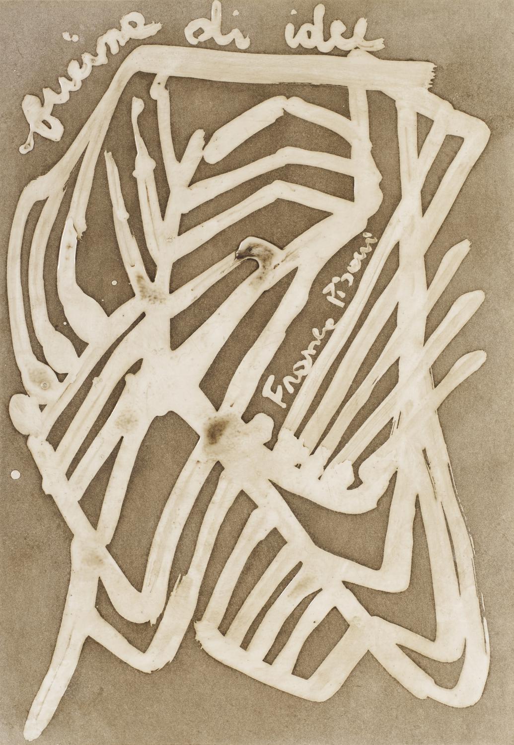 Franca Pisani FUCINA DI IDEE smalti e ossidi su pergamena, cm 48x33 firma e...