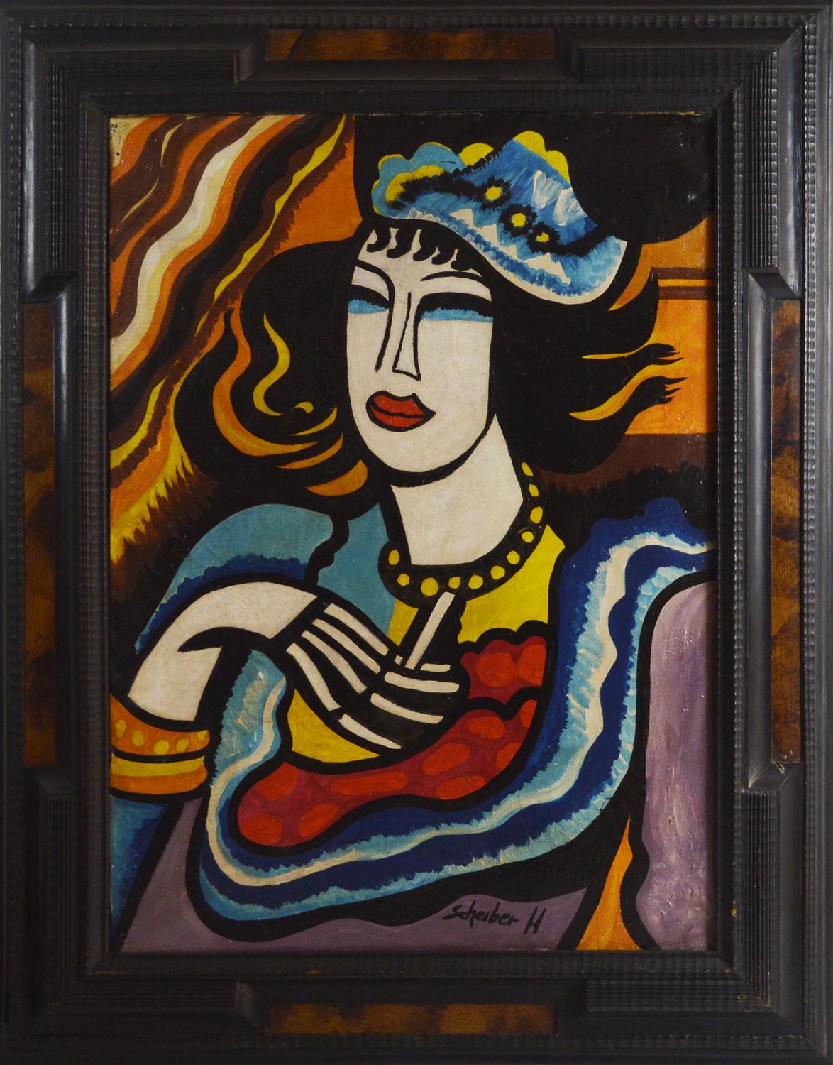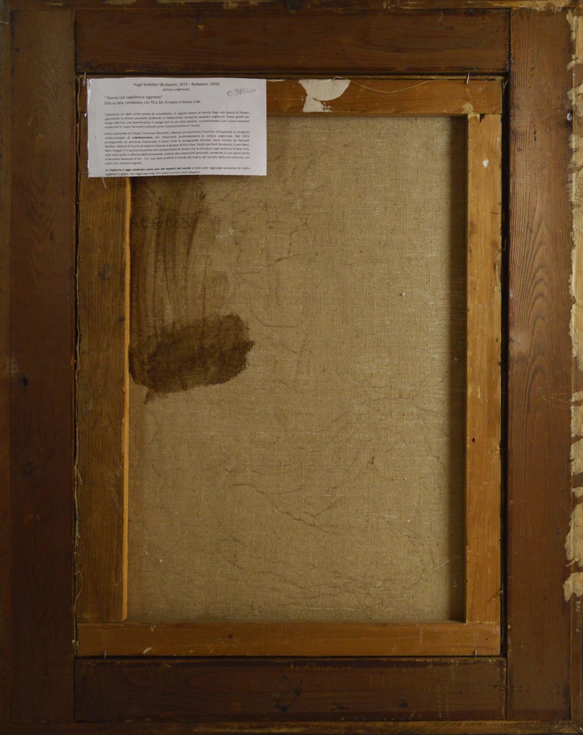 Hugo Scheiber DONNA CON CAPPELLINO E SIGARETTA olio su tela, cm 70x50 firma