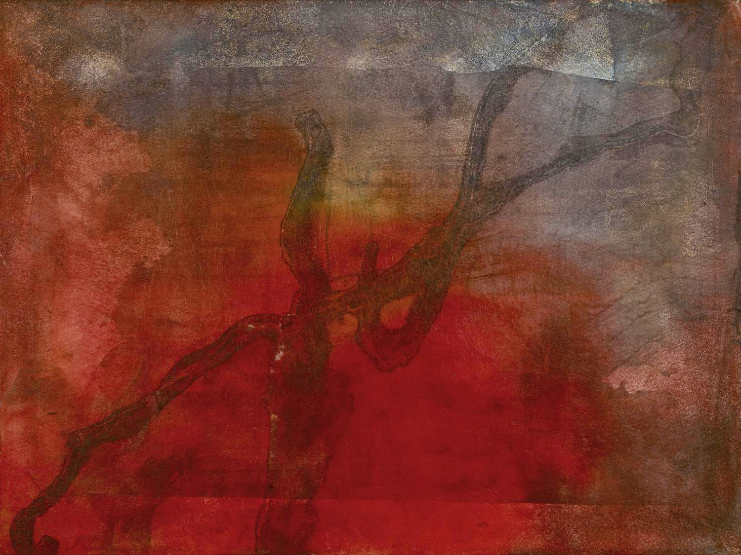 acrilico, combustione e fibra crystal su tela, cm 85x113,5