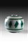 Vaso in ceramica con decoro geometrico nei toni del verde e giallo.
