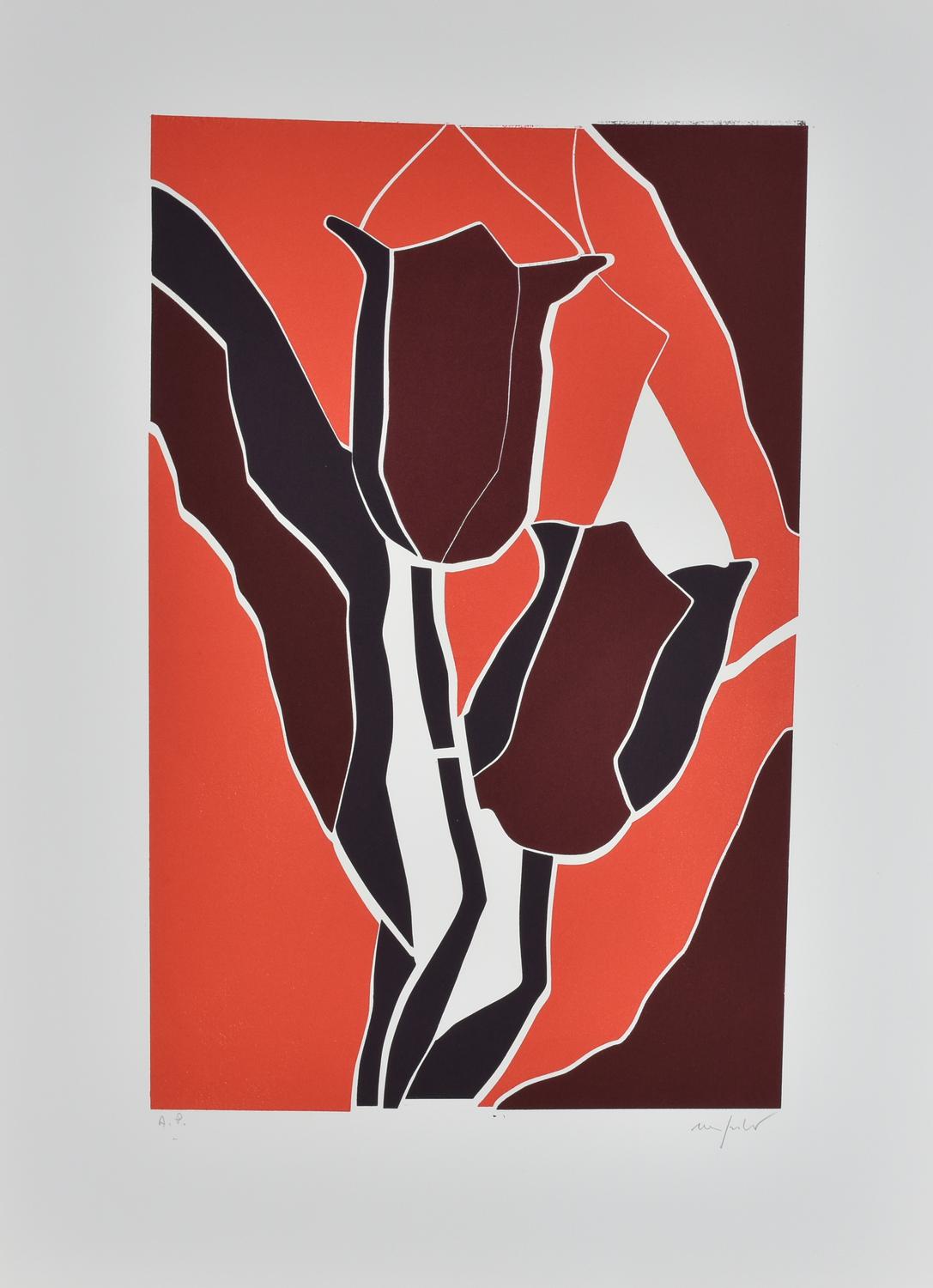 Lotto 4 | Ugo Nespolo TULIPANI incisione su carta, battuta cm 51x33, su foglio cm...