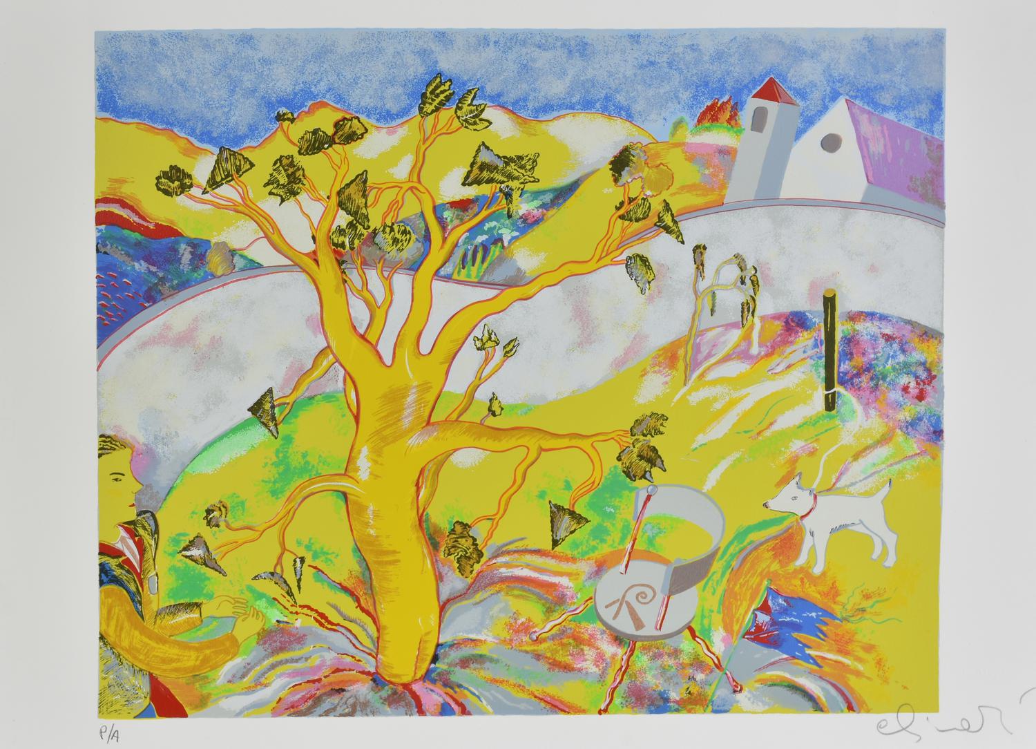 Luca Alinari L'ALBERO GIALLO litografia su carta Fabriano, cm 50x70; es....