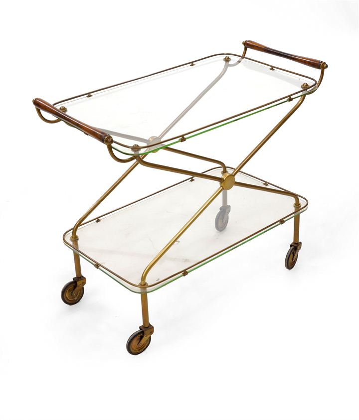 CARRELLO Carrello bar con struttura in ottone, impugnatura in legno di faggio...