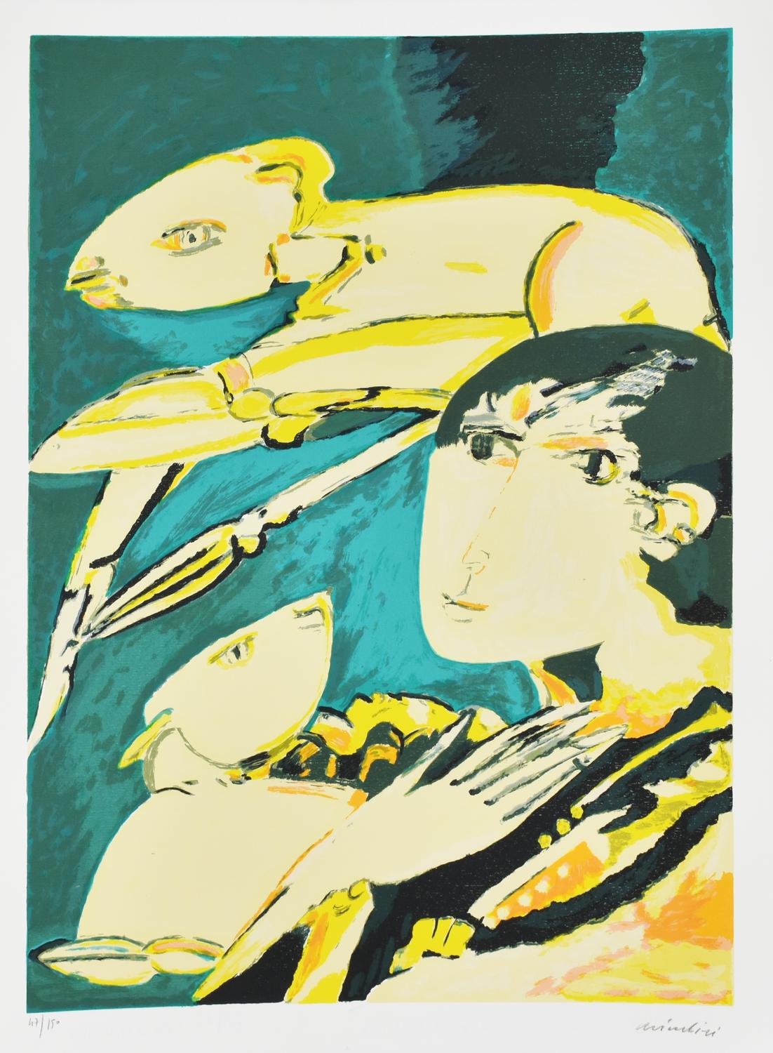 Remo Brindisi PASTORE litografia su carta Fabriano, cm 70x50 esemplare 47/150...
