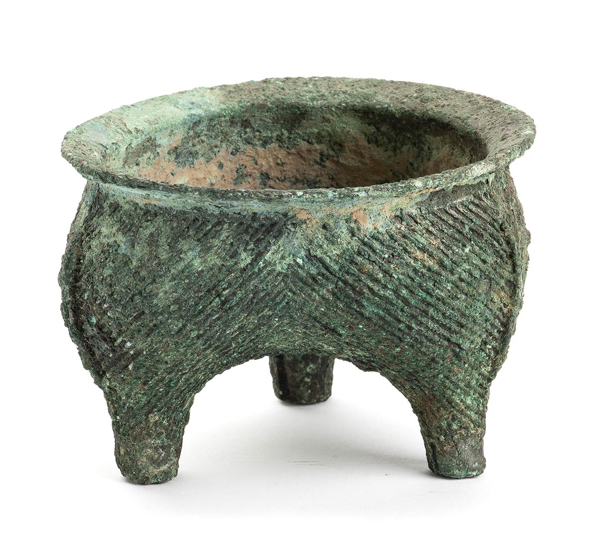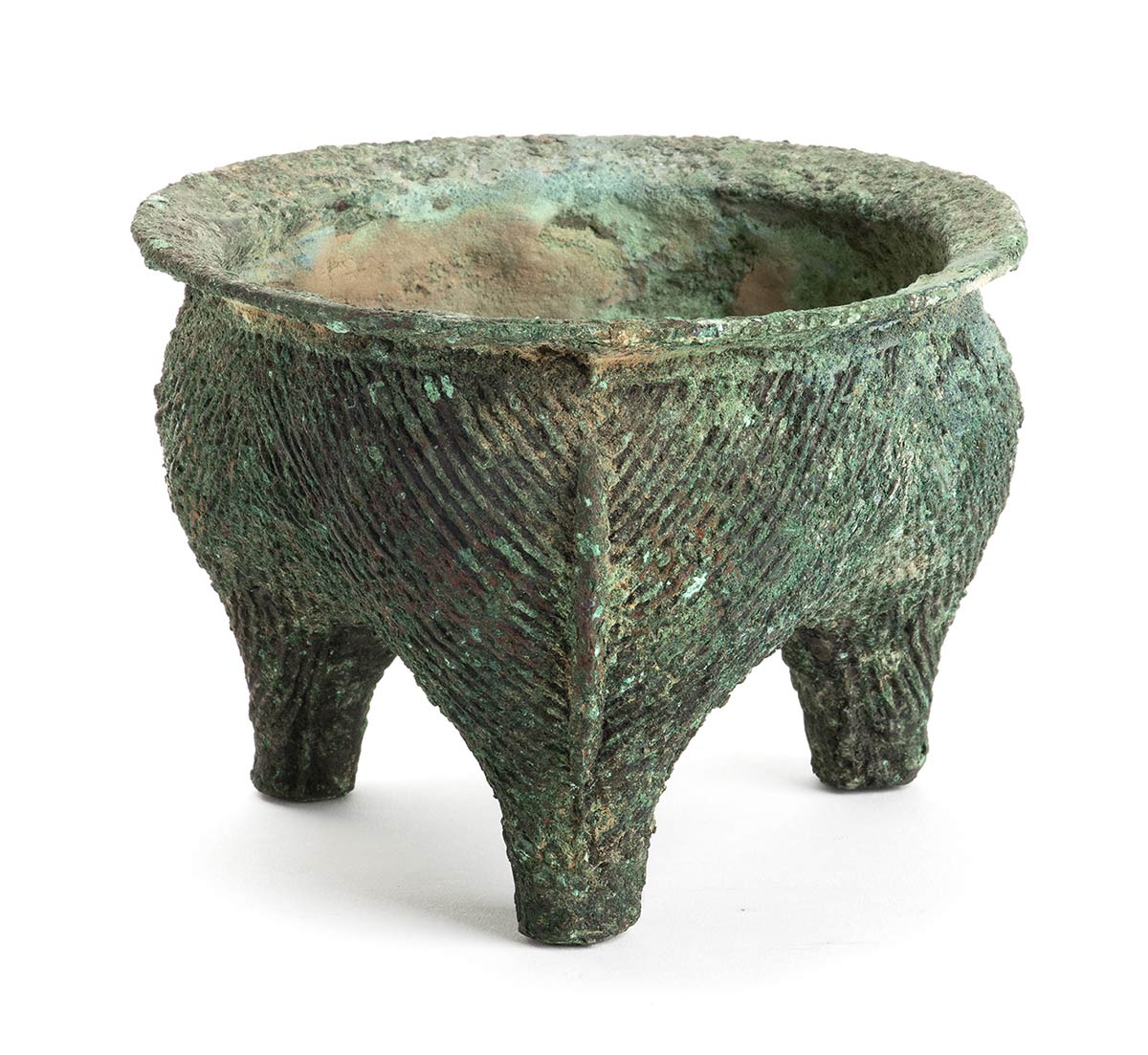 PICCOLO CONTENITORE TRIPODE DA CIBO IN BRONZO, LI<br>Cina, dinastia Shang