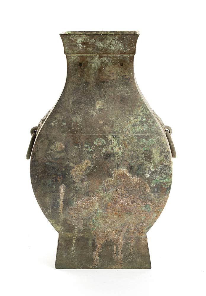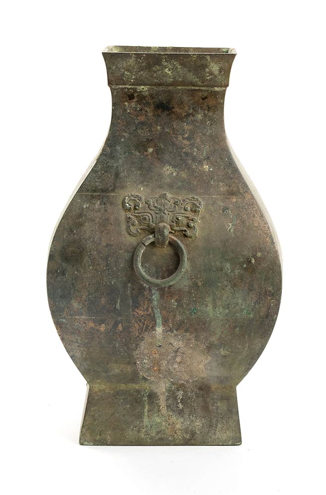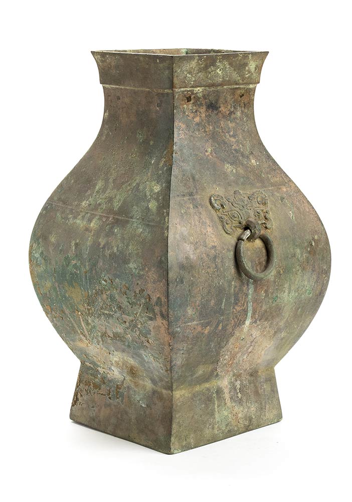 VASO QUADRATO IN BRONZO, FANGHU<br>Cina, dinastia Han Occidentali