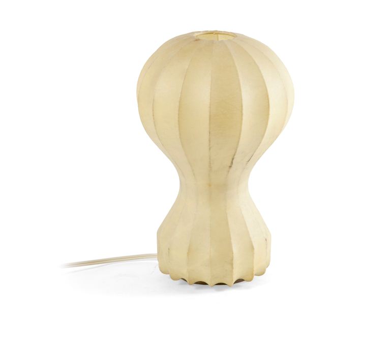Lampada da tavolo con intelaiatura metallica rivestita in cocoon.