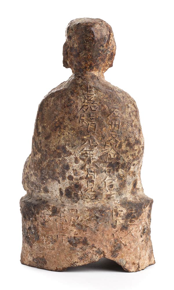 SCULTURA DI LOHAN PINDOLA CON TIGRE IN FERRO<br>Cina, dinastia Ming, regno di Jiajing, 1522