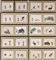Inchiostro e colori su carta, diciotto raccolti per coppia in cornice, due in cornice singola.