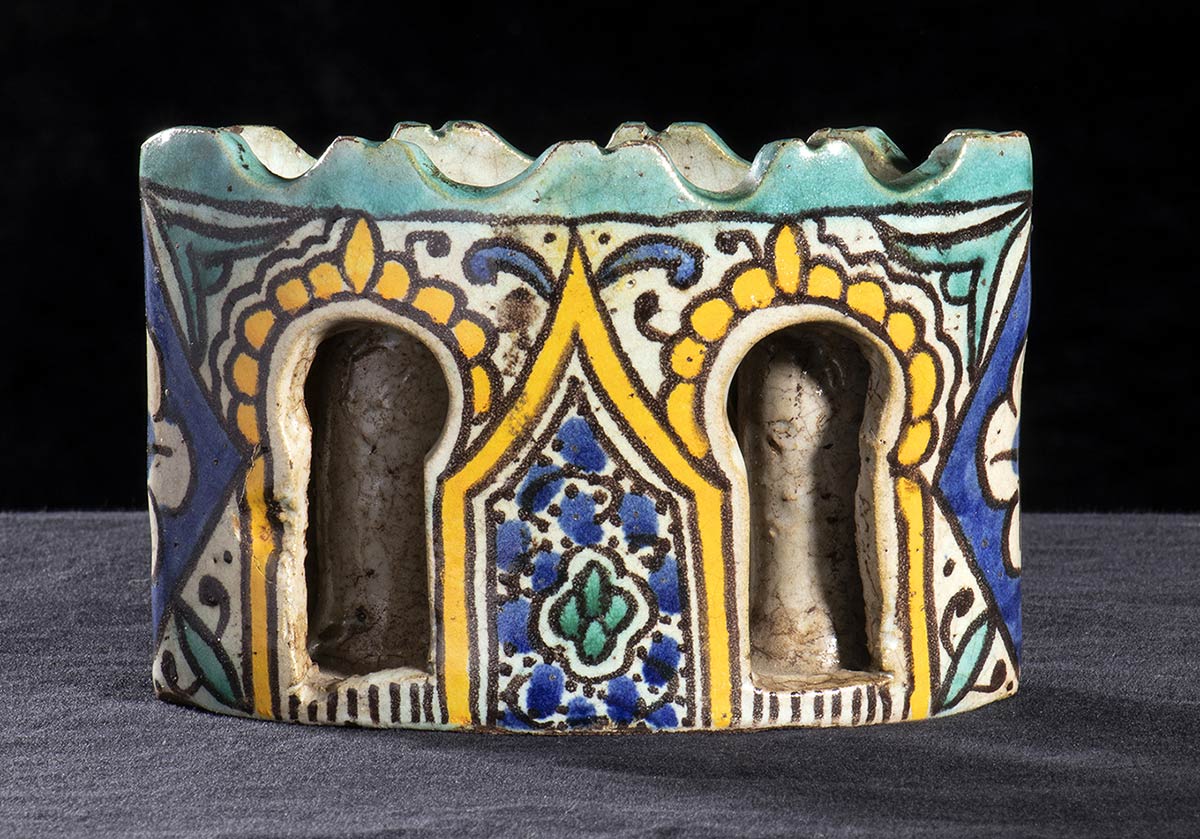 CALAMAIO IN CERAMICA DIPINTA E INVETRIATA<br>Marocco, XIX secolo