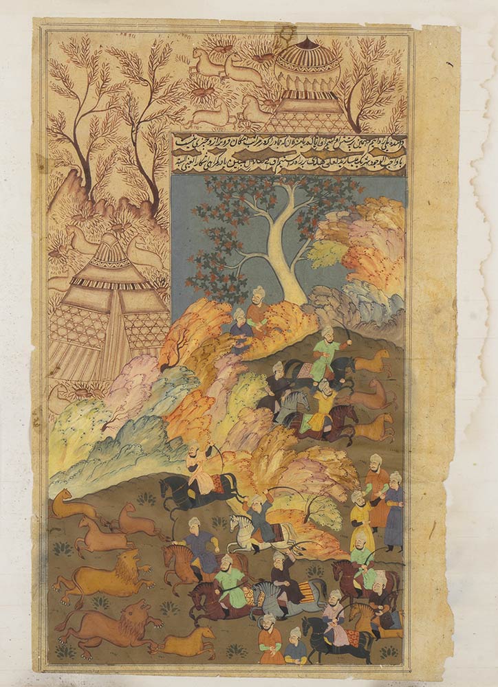 PAGINA MINIATA CON SCENA DI CACCIA<br>Persia, XVIII-XIX secolo