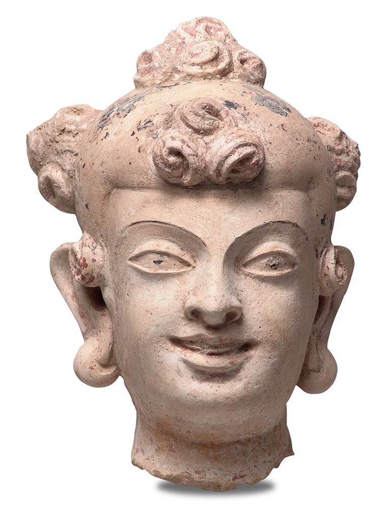 TESTA FEMMINILE IN STUCCO<br>Regione del Gandhara, IV secolo