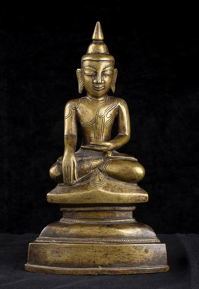 SCULTURA DI BUDDHA IN LEGA DI RAME<br>Birmania, XIX secolo
