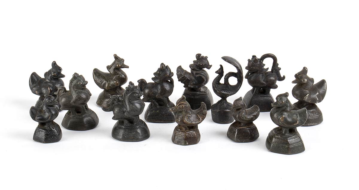 TREDICI PESI DA OPPIO IN BRONZO<br>Birmania, XIX secolo