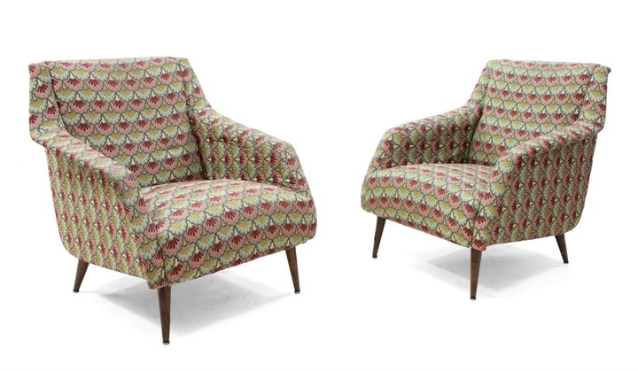 DE CARLI CARLO 802 Due poltrone con struttura in legno ed imbottitura in...