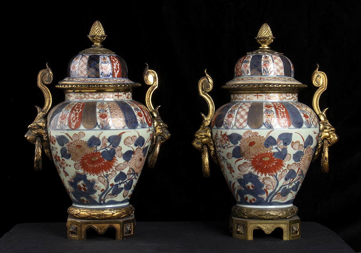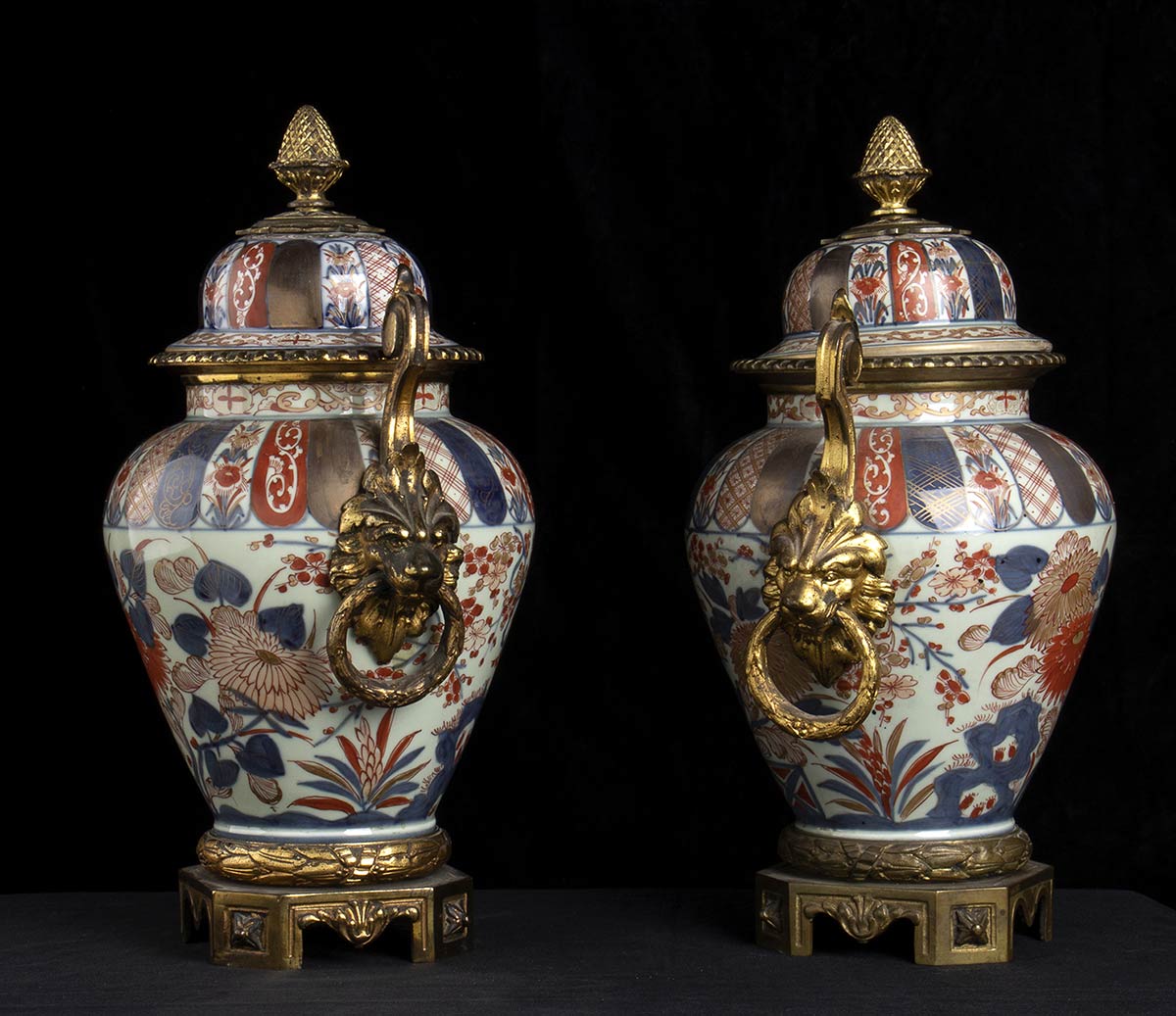 COPPIA DI VASI IN PORCELLANA 'IMARI' CON MONTATURA IN BRONZO DORATO<br>i vasi Giappone, inizio del XVIII secolo; la montatura Europa, XIX secolo