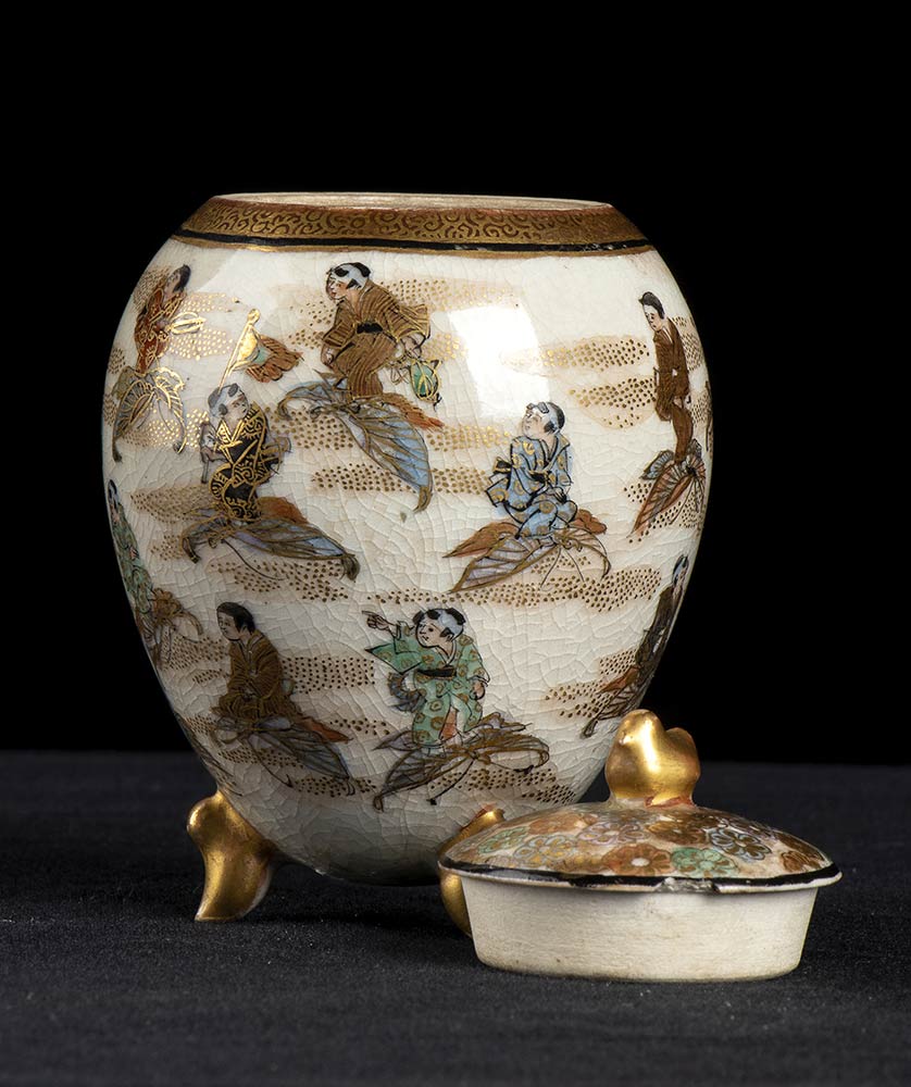 VASETTO OVOIDALE CON COPERCHIO IN CERAMICA 'SATSUMA'<br>Giappone, periodo Meiji