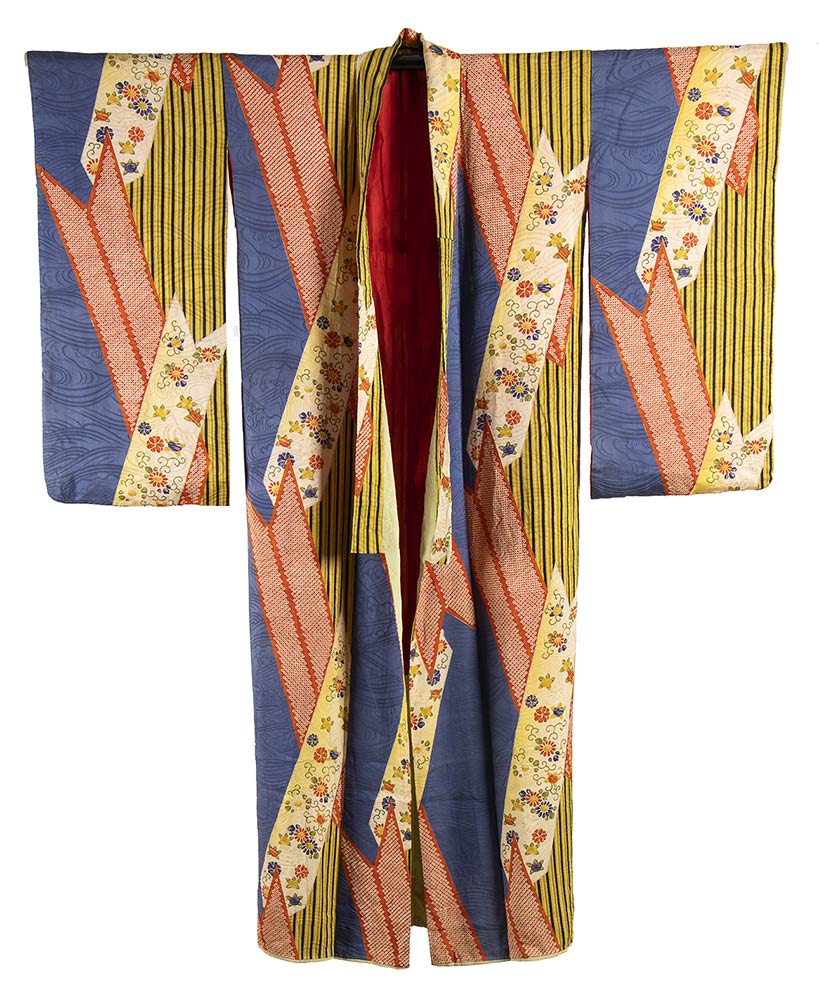 Motivi decorativi tipicamente maschili per l'Occidente, come quello su questo abito, in Giappone sono invece molto comuni anche nei kimono da donna.