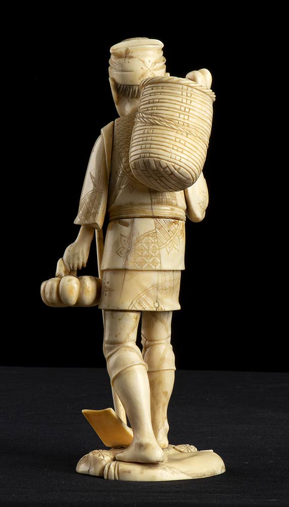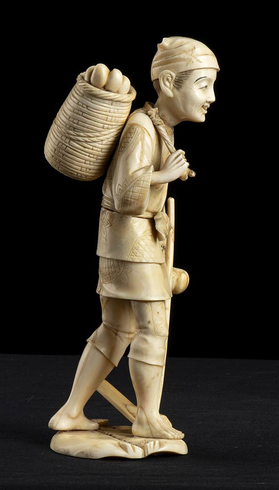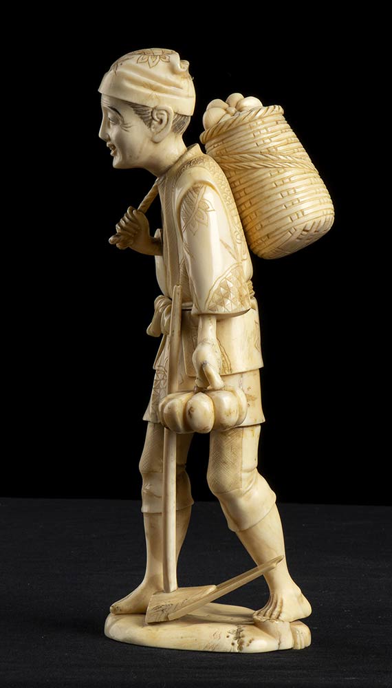 SCULTURA CON CONTADINO IN AVORIO, OKIMONO<br>Giappone, periodo Meiji
