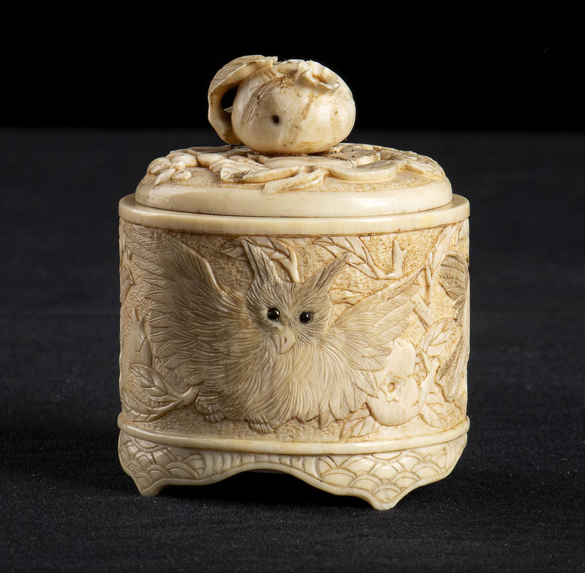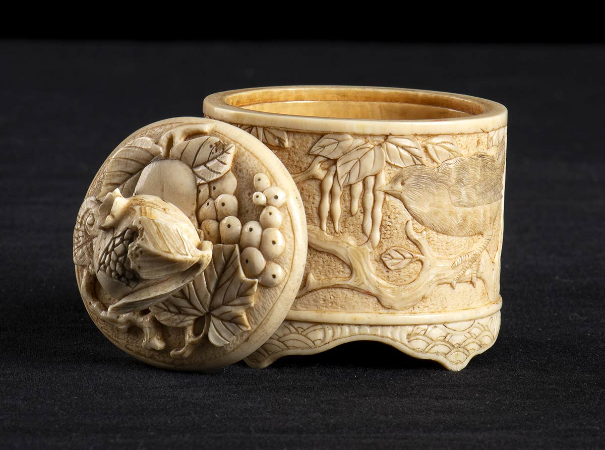 SCATOLINA IN AVORIO CON COPERCHIO<br>Giappone, periodo Meiji
