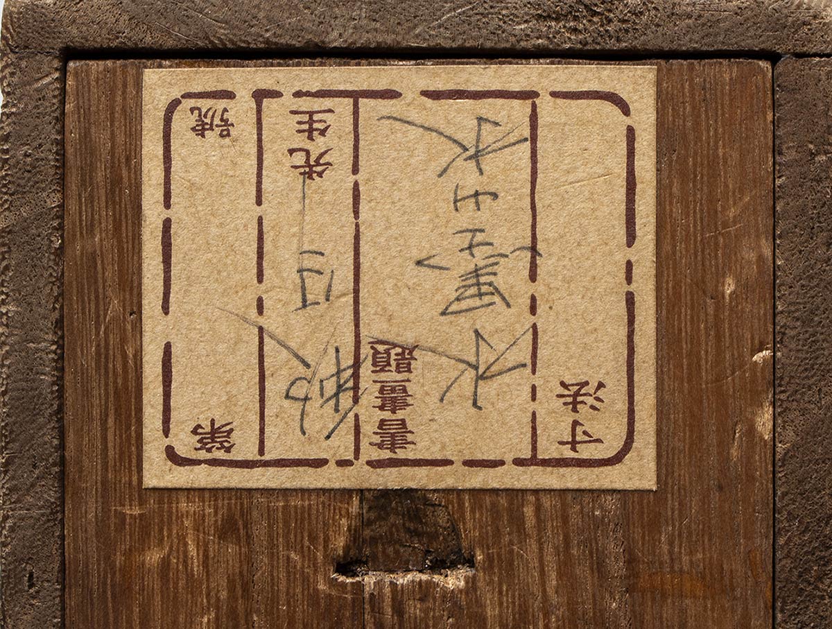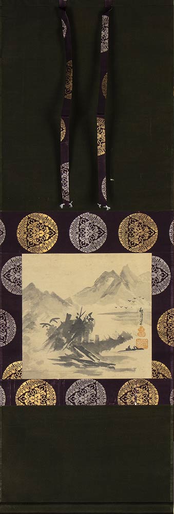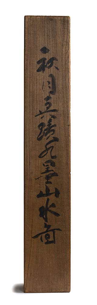 Firmato sul margine destro 秋月筆 (Shūgetsu hitsu, “Il pennello di Shūgetsu”) con due sigilli; cornice in seta; ha sua scatola in legno antica con iscrizioni.