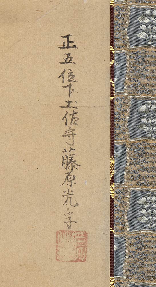 Cornice in seta, firmato in alto a destra con sigillo.