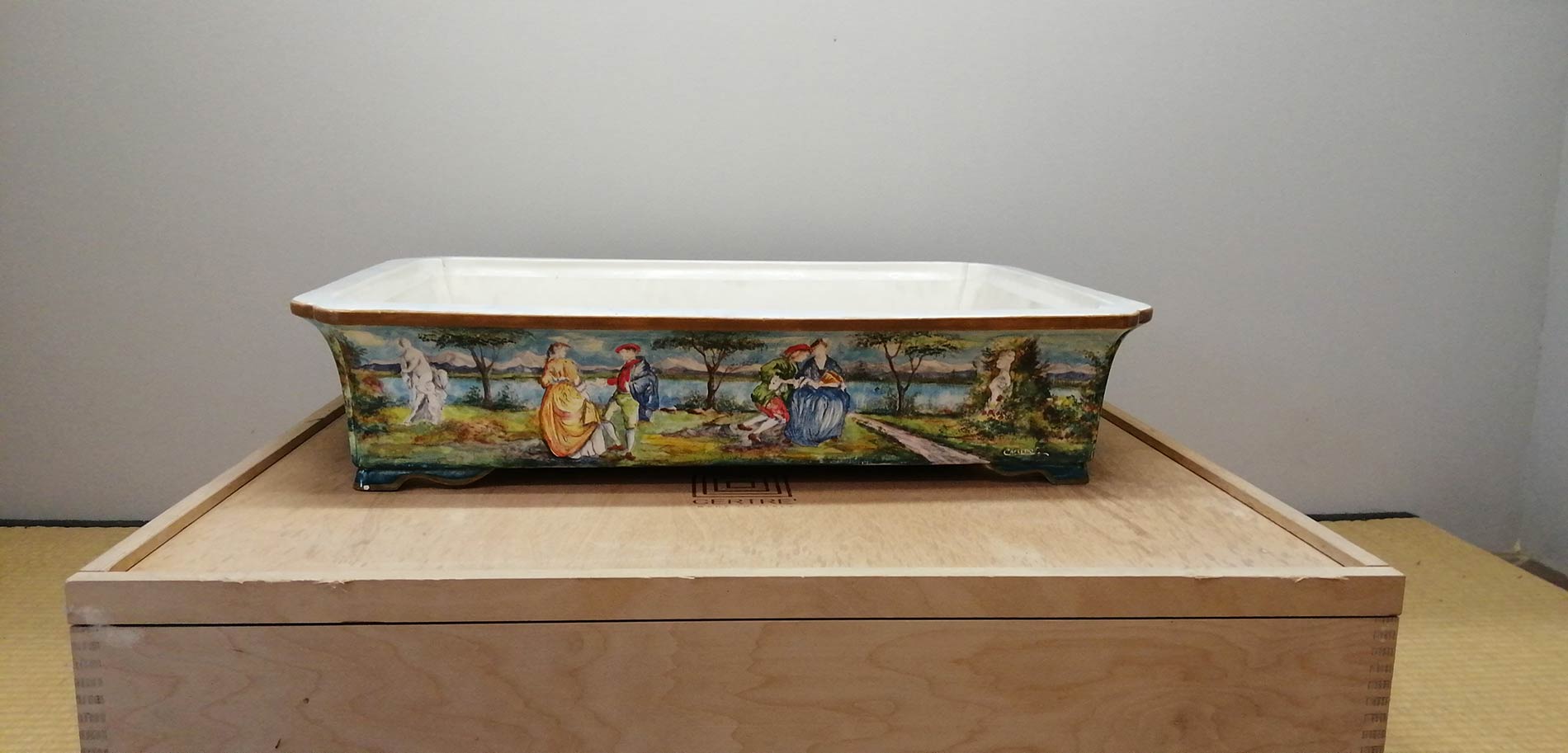 VASO IN PORCELLANA DIPINTA CON SCENE ALLA WATTEAU<br>Certrè