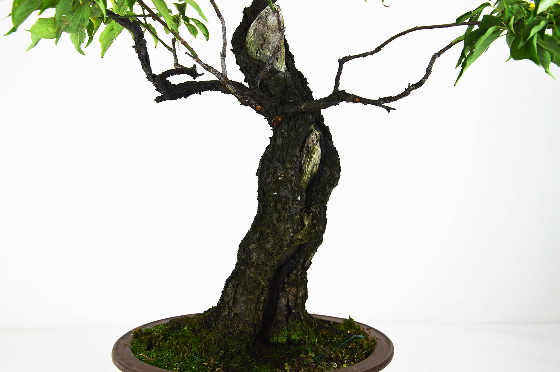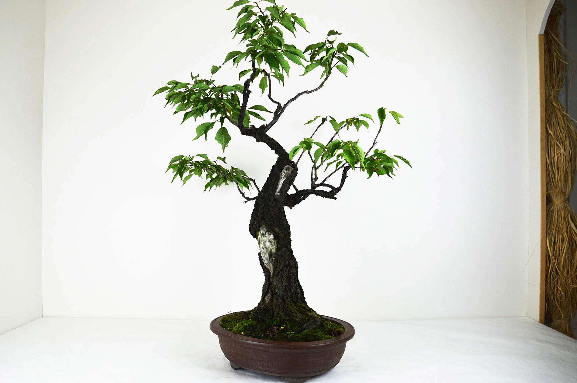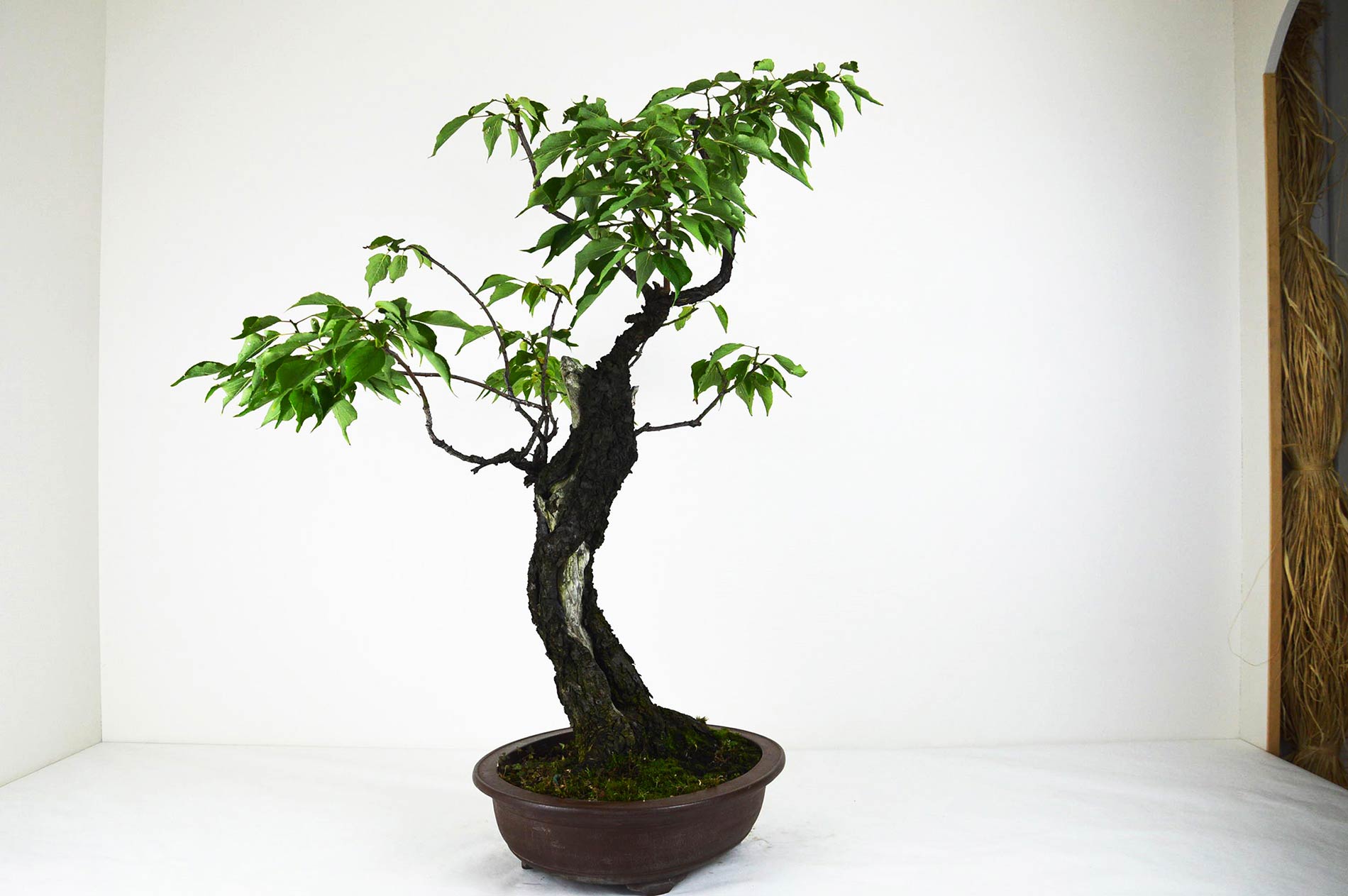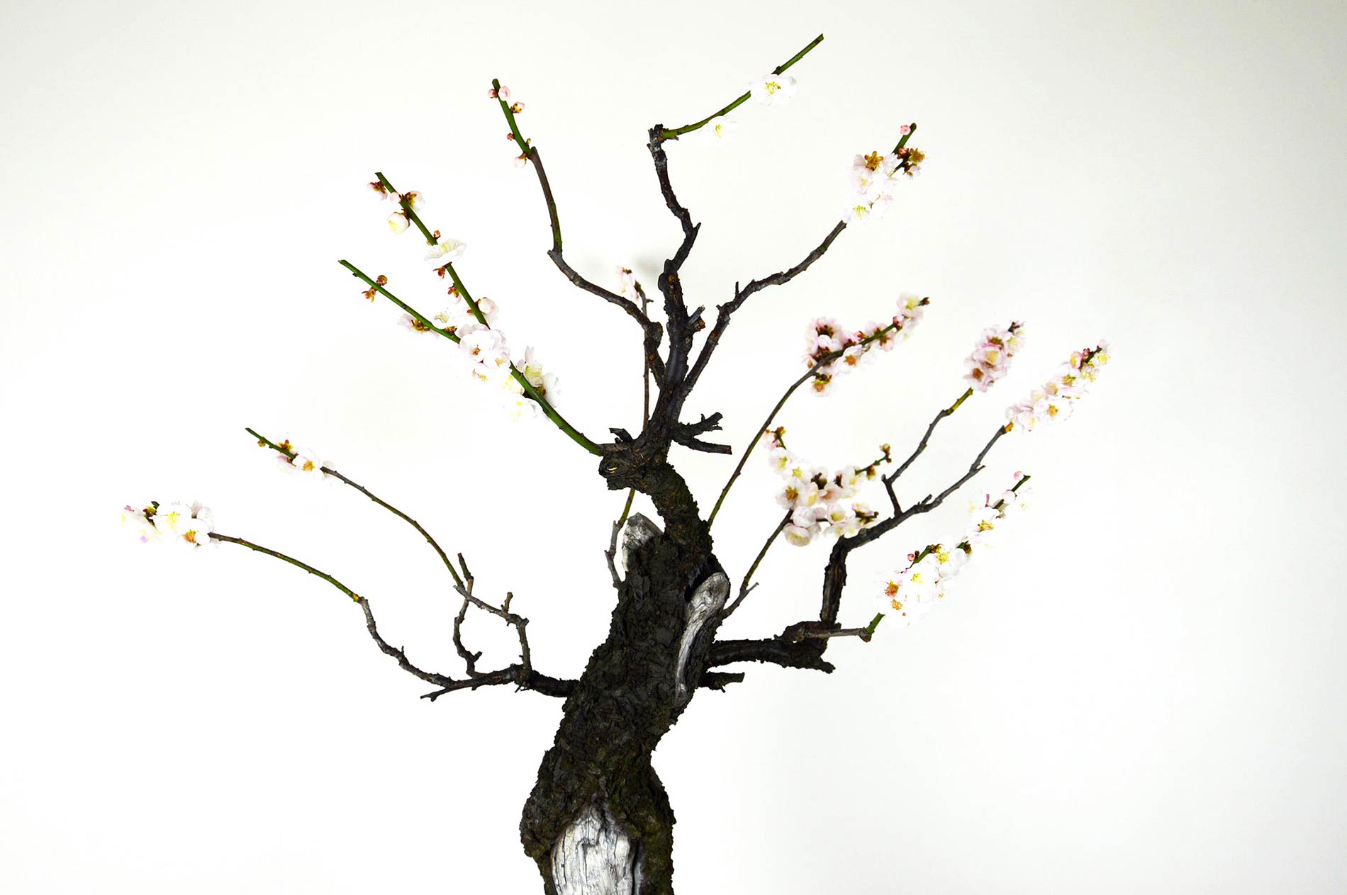 Bonsai di prunus mume "Ume" di provenienza giapponese in stile eretto informale, posto in vaso in gres non smaltato ovale. Età stimata 80 anni.