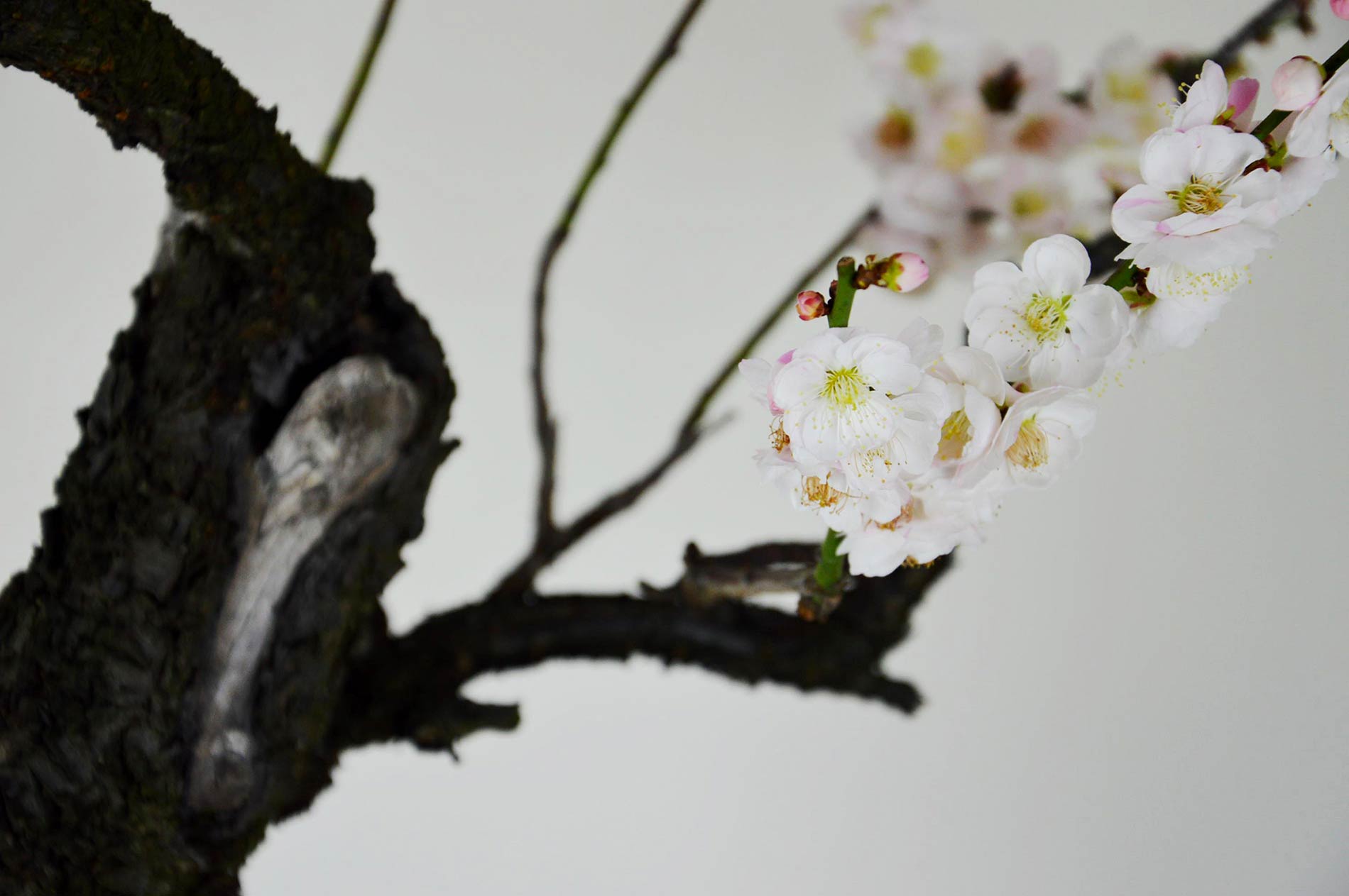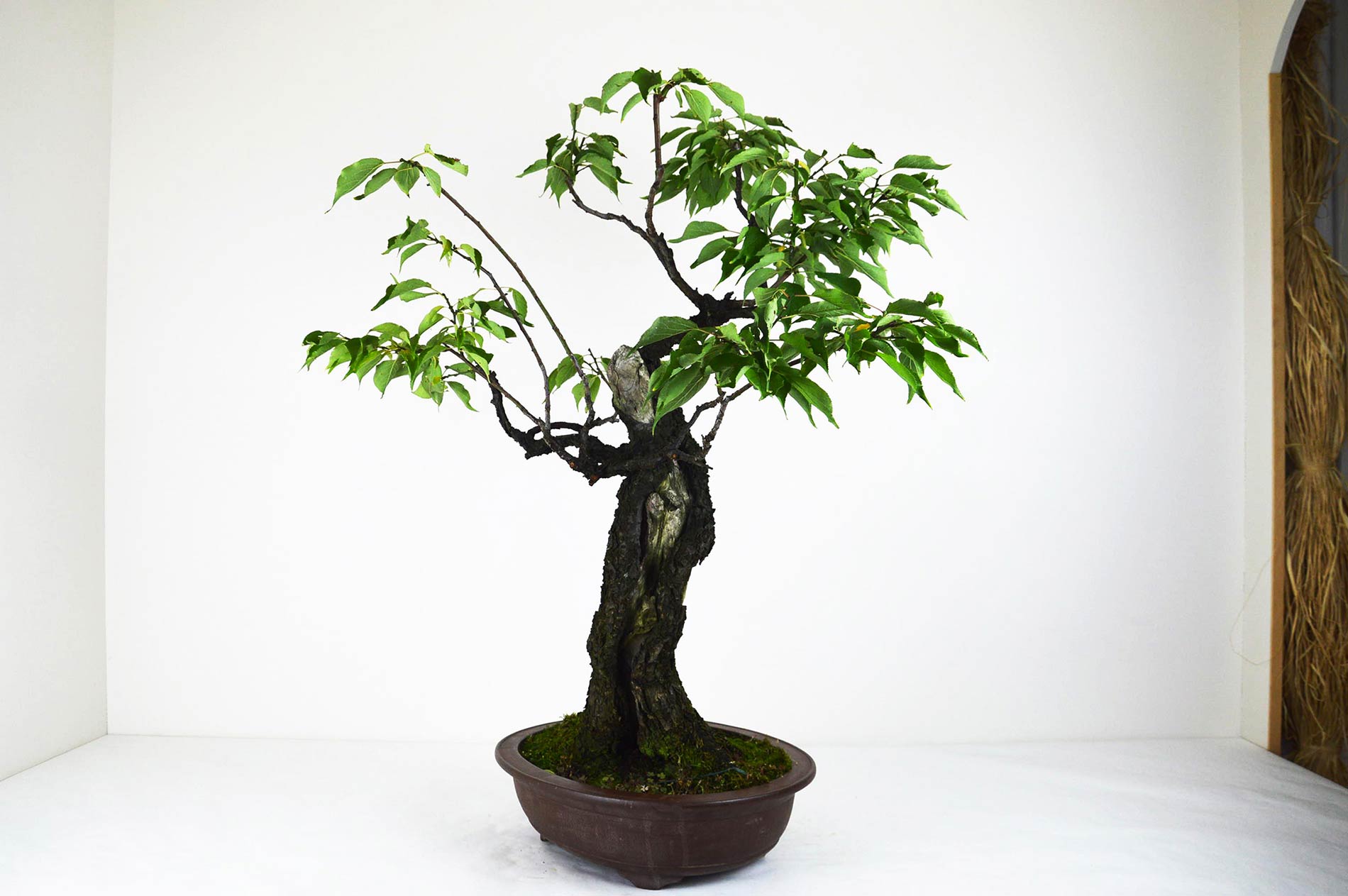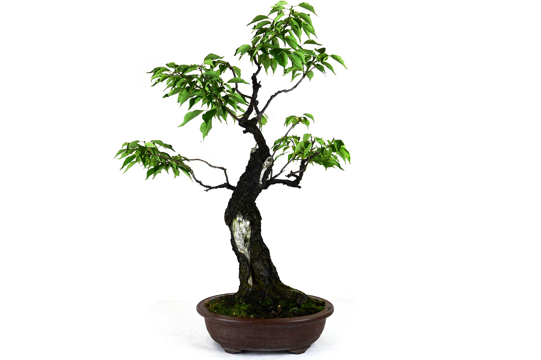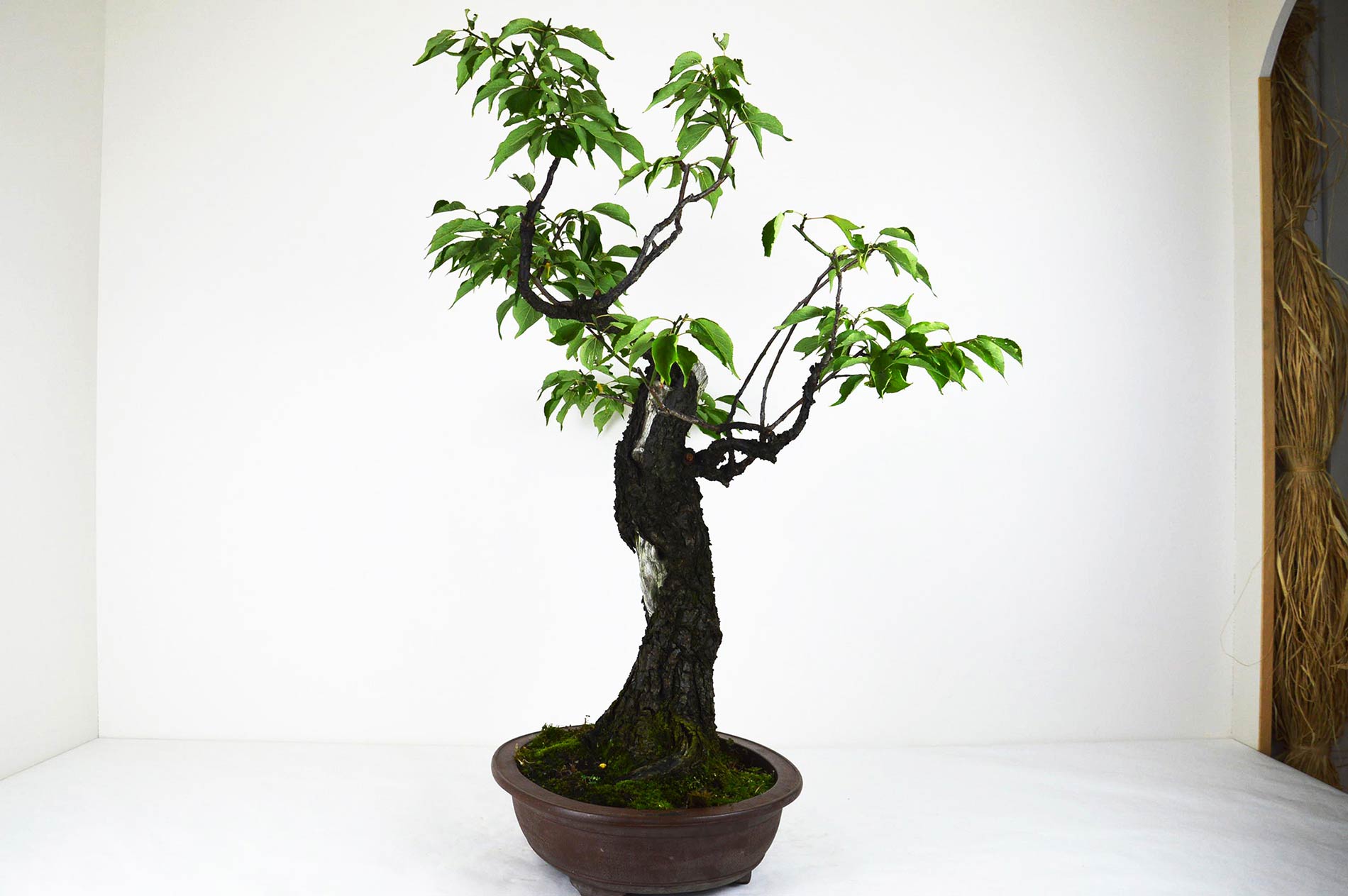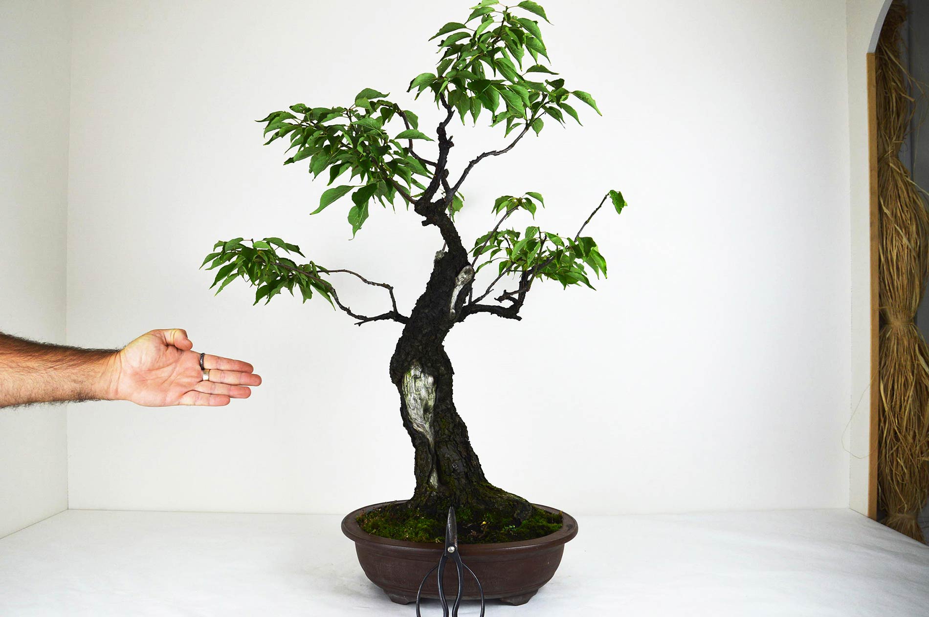 Bonsai di prunus mume "Ume" di provenienza giapponese in stile eretto informale, posto in vaso in gres non smaltato ovale. Età stimata 80 anni.