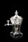 Samovar in argento con presa del coperchio tornita, anse ad anelli sorretti da