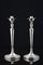 Coppia di candelieri in argento con fusto liscio sormontato da mezzi busti di b