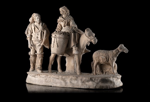 Salvatore Scuto (Caltagirone 1889) "Shepherds with herds" a terracotta group. S. Scuto Caltagirone on the base (cm 33x28x14) (defects and losses)