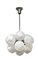 Lampadario con dodici globi sfaccettati in vetro soffiato opalino bianco.