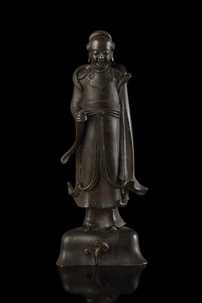 Scultura di dignitario in bronzo a patina scura Cina, dinastia Ming, sec. XVIII