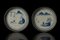 Coppia di piattini sotto teiera in porcellana bianca e blu con montatura in pel