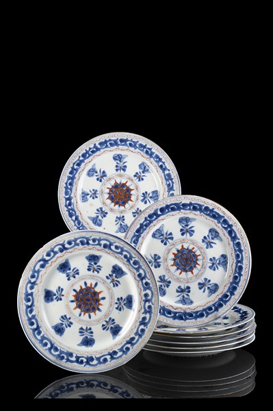 Lotto 1071 | Gruppo di otto piatti a decoro floreale, Compagnia delle Indie (difetti) secolo