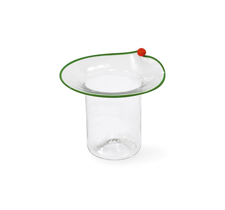 Vetro trasparente bordo a filo e decorazione applicata in pasta vitrea applicata.