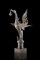 Scultura in bronzo raffigurante drago alato reggente campanello, base in legno (difetti e restauri)