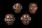 Quattro maschere Kabuki in cartapesta, vetro e stucco (difetti e mancanze)