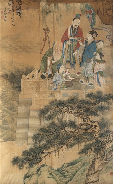 Dipinto raffigurante paesaggio e figure orientali, in cornice (difetti e restau