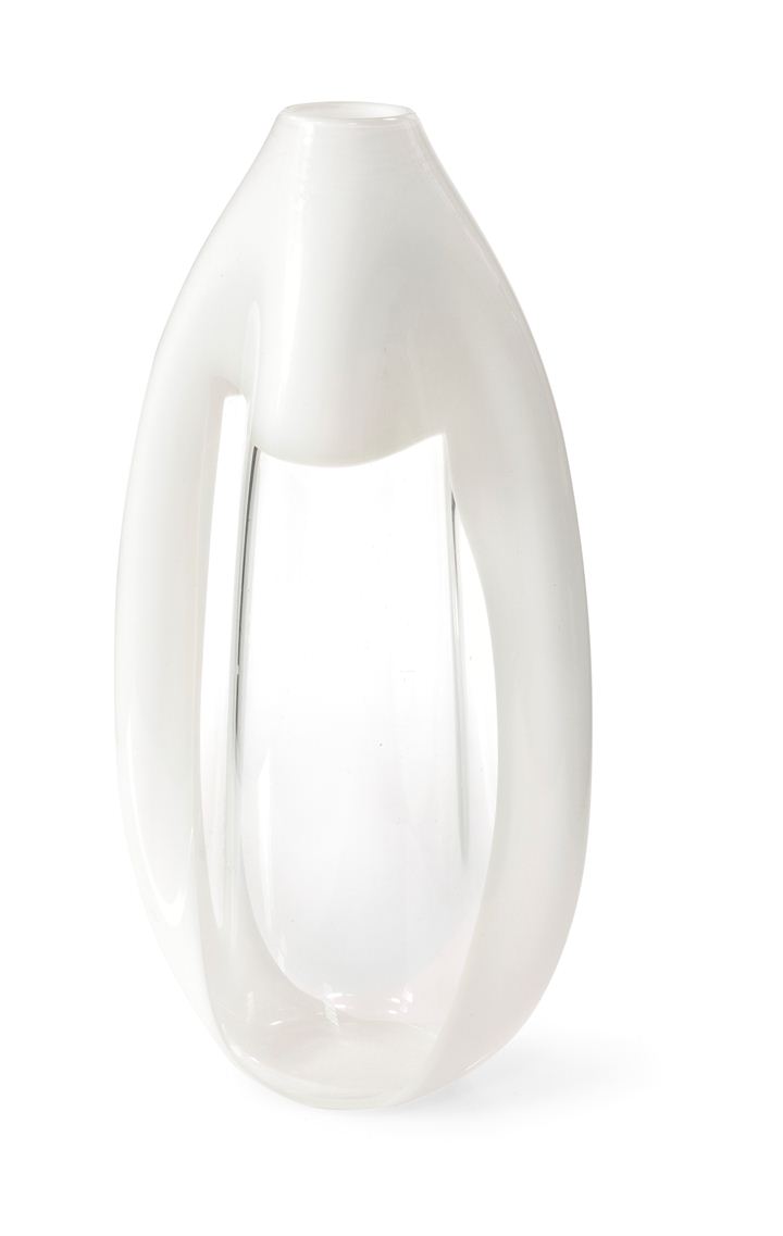 MANIFATTURA MURANESE Vaso lobato in vetro cristallo e lattimo. Firma incisa...