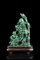 Gruppo in malachite raffigurante saggio con discepolo, base sagomata in legno C