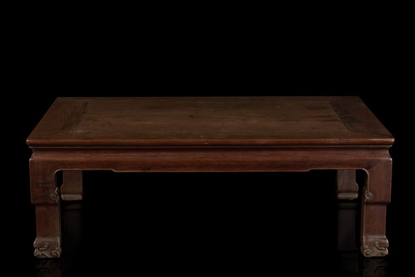 Tavolino basso, rettangolare in legno rosso e legno di frutto (difetti) Cina, f