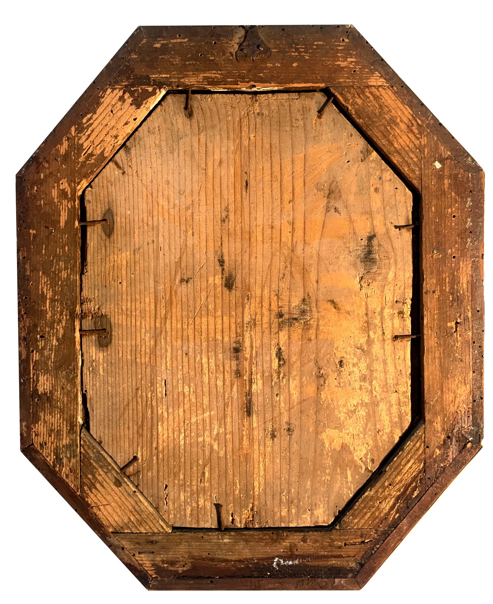 Dipinto ad olio su rame ottagonale (ribattuto a mano) raffigurante Sacra...