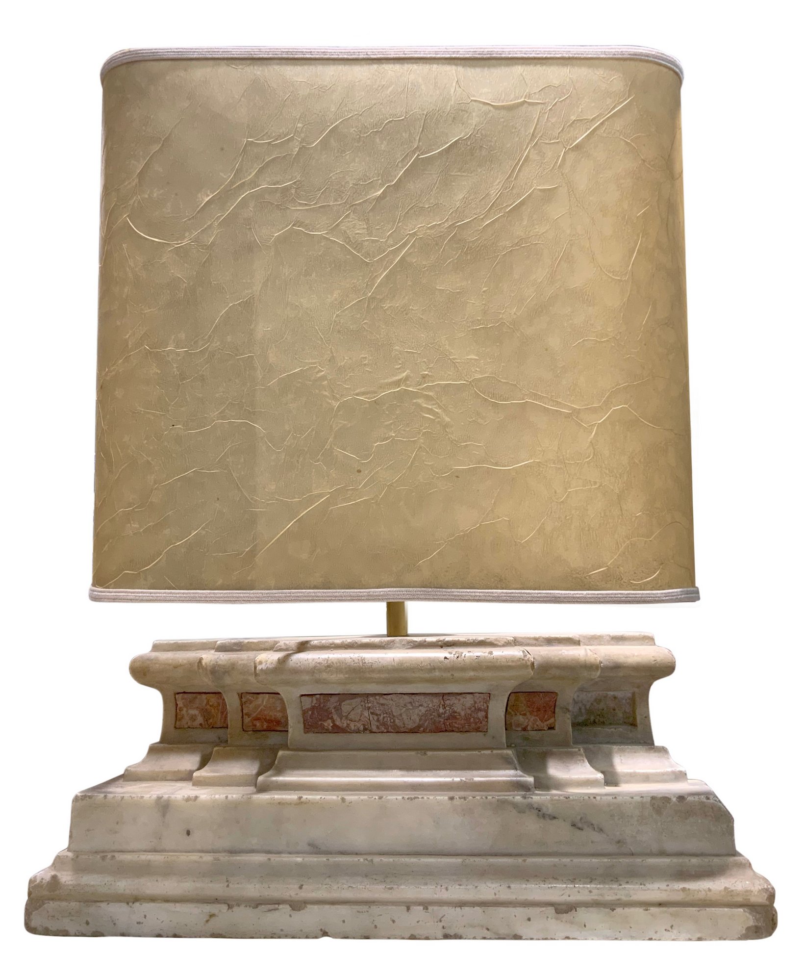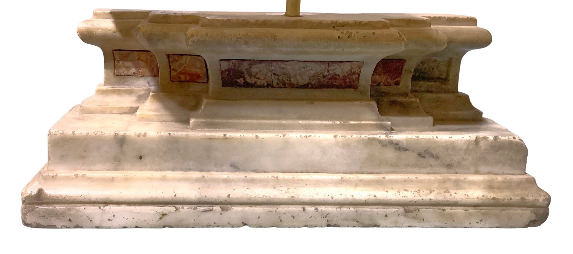 Frammento di marmo con inserti di diaspri siciliani, base del XVIII secolo. Adattato a lampada. H Cm 15Xcm 41x11.