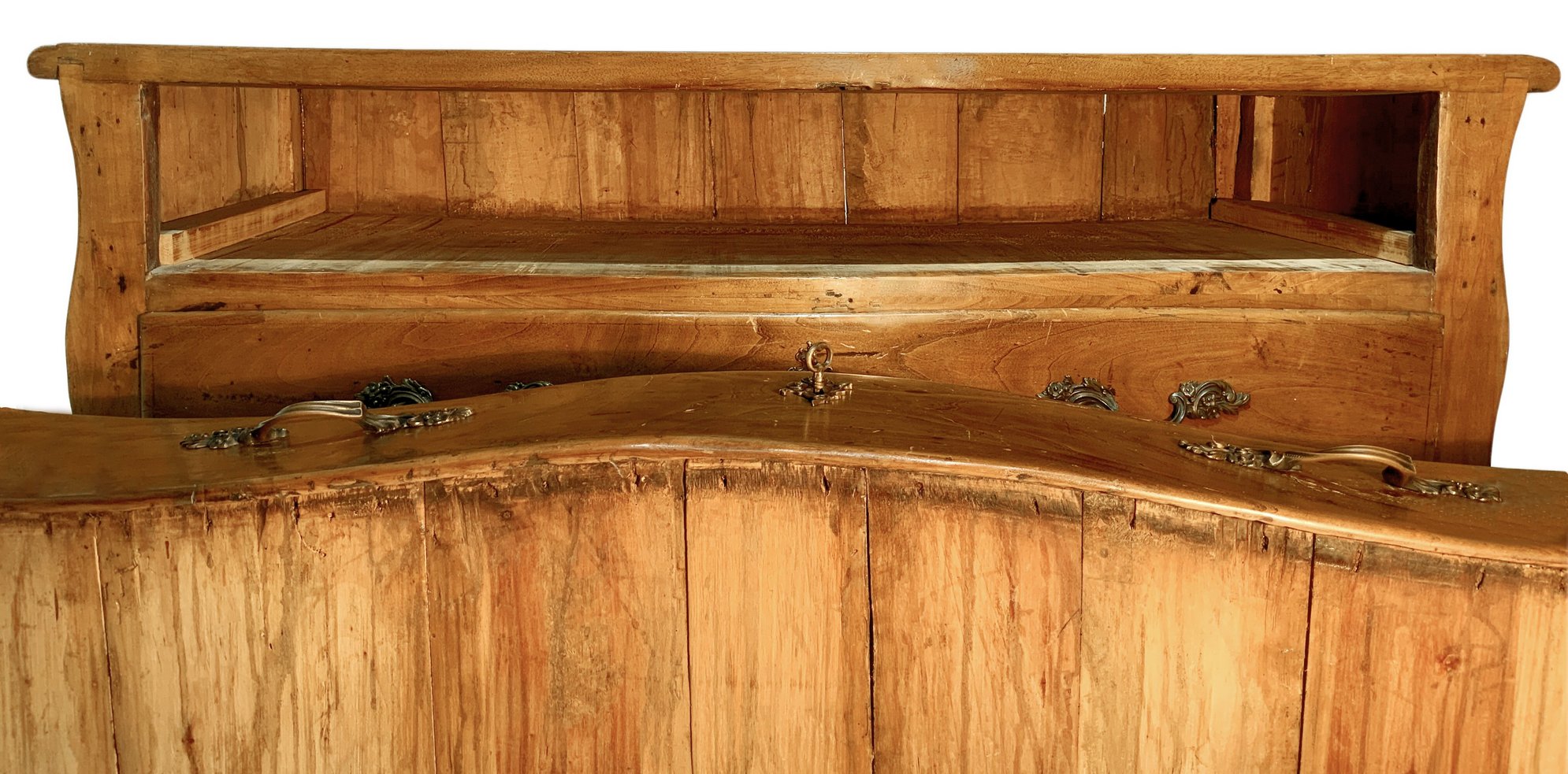 Cassettone in massello di noce, XVIII secolo, Emilia. A due cassetti. H cm 91x148x62