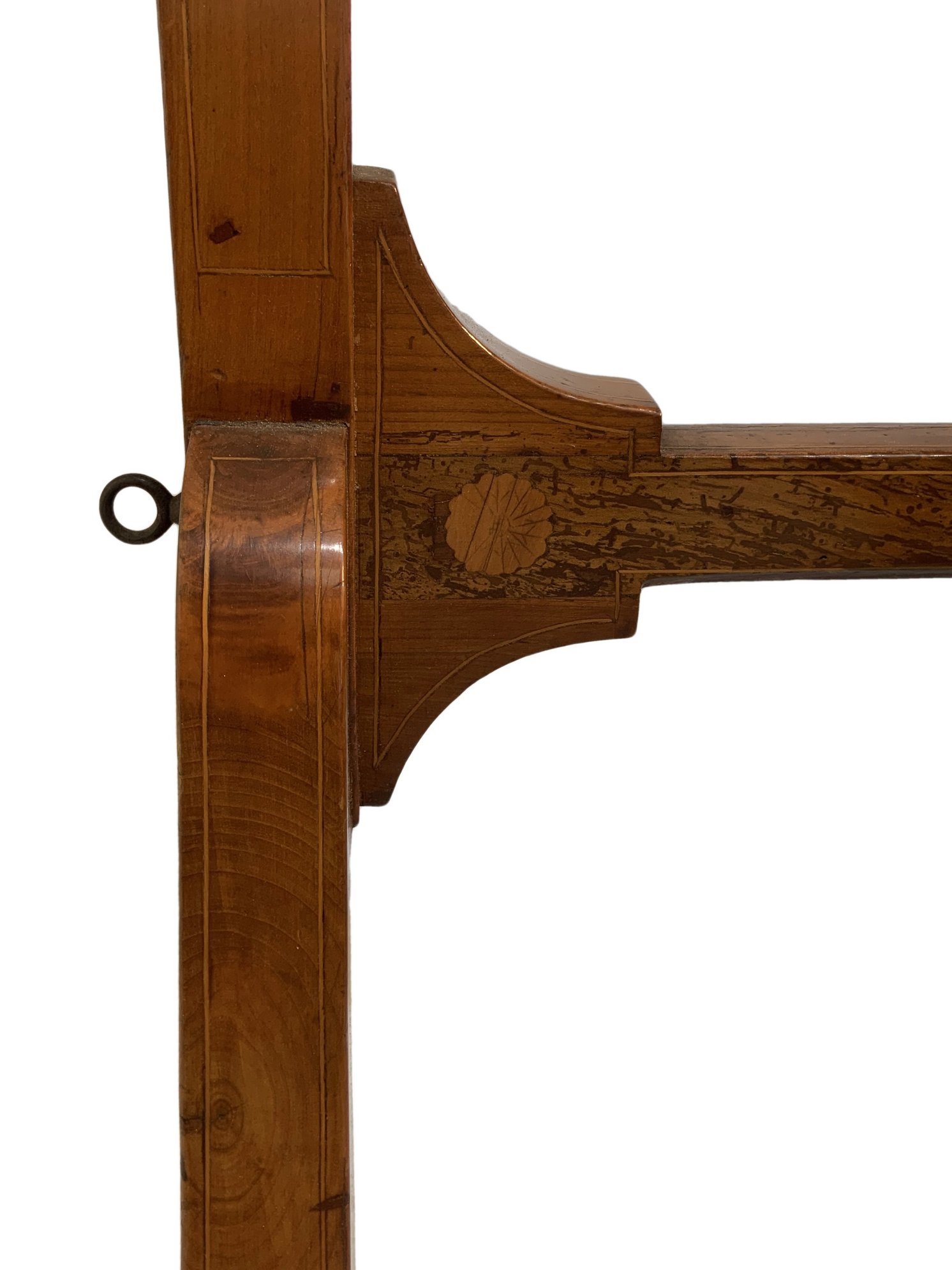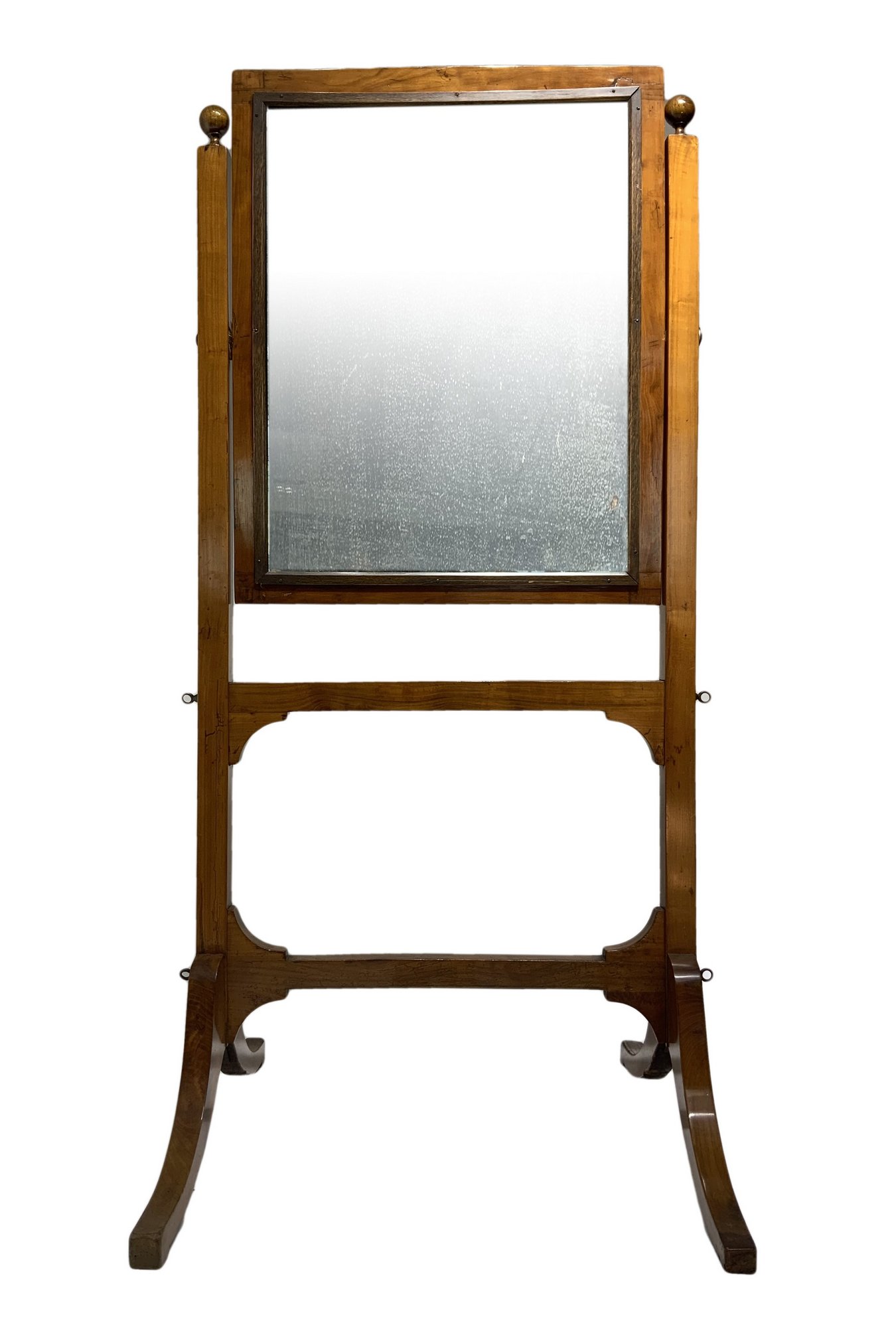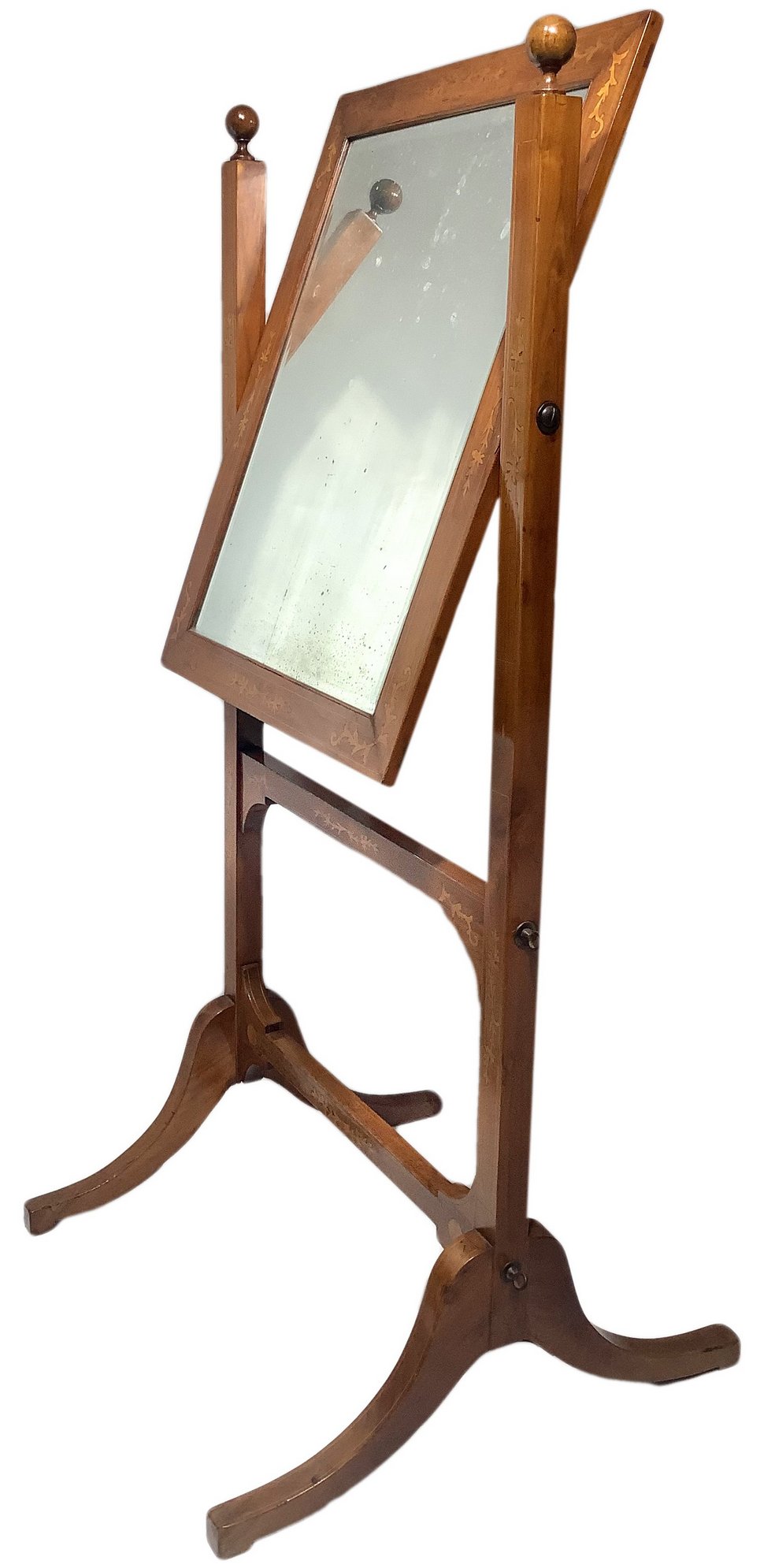 Psiche basculante in legno di noce con intarsi e perfili in legno chiaro. Specchio al mercurio su ambo i lati, fine XVIII/inizi XIX, periodo Direttorio, Sicilia, provenienza famiglia nobliare dei Cerami. H cm 158, cm 73x71.