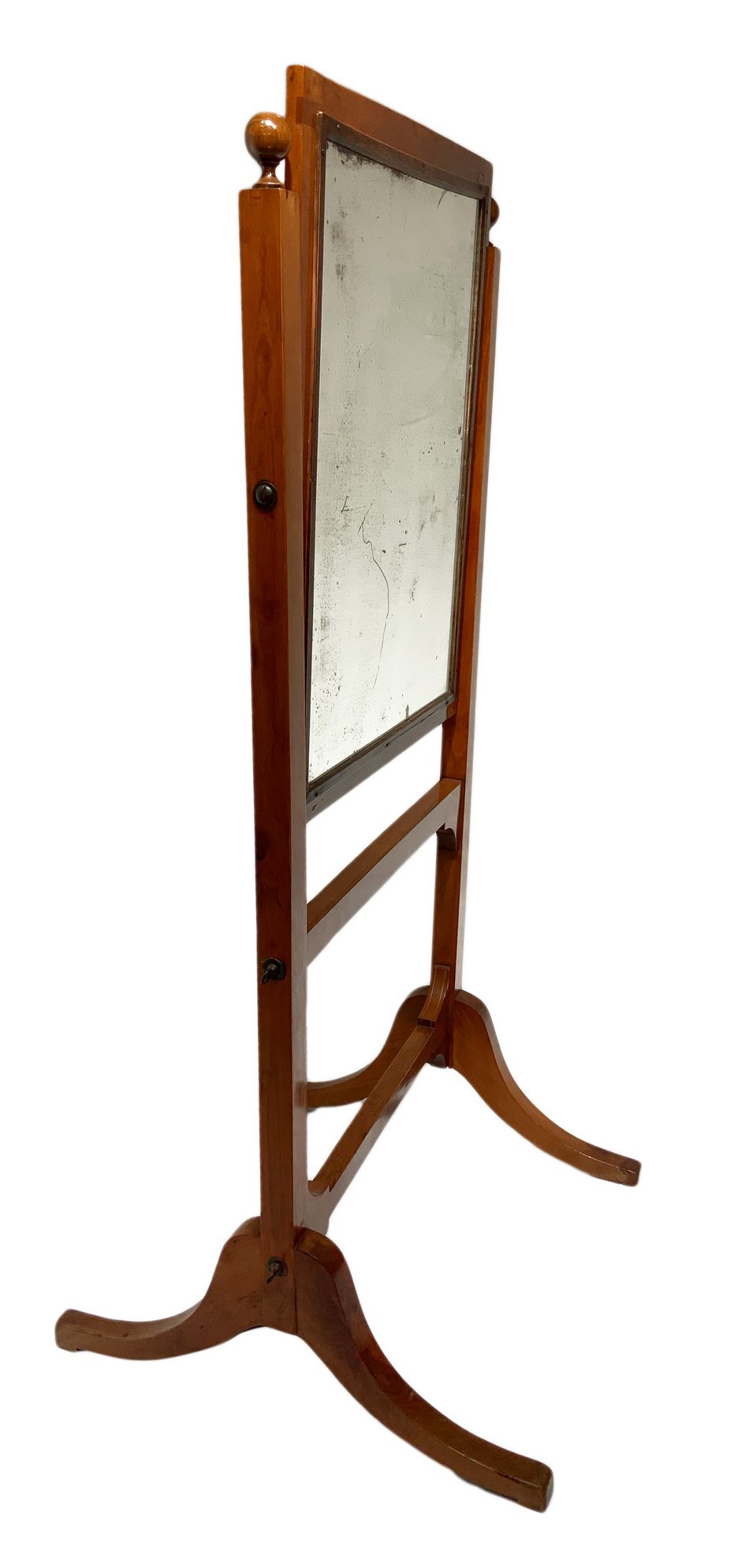 Psiche basculante in legno di noce con intarsi e perfili in legno chiaro....