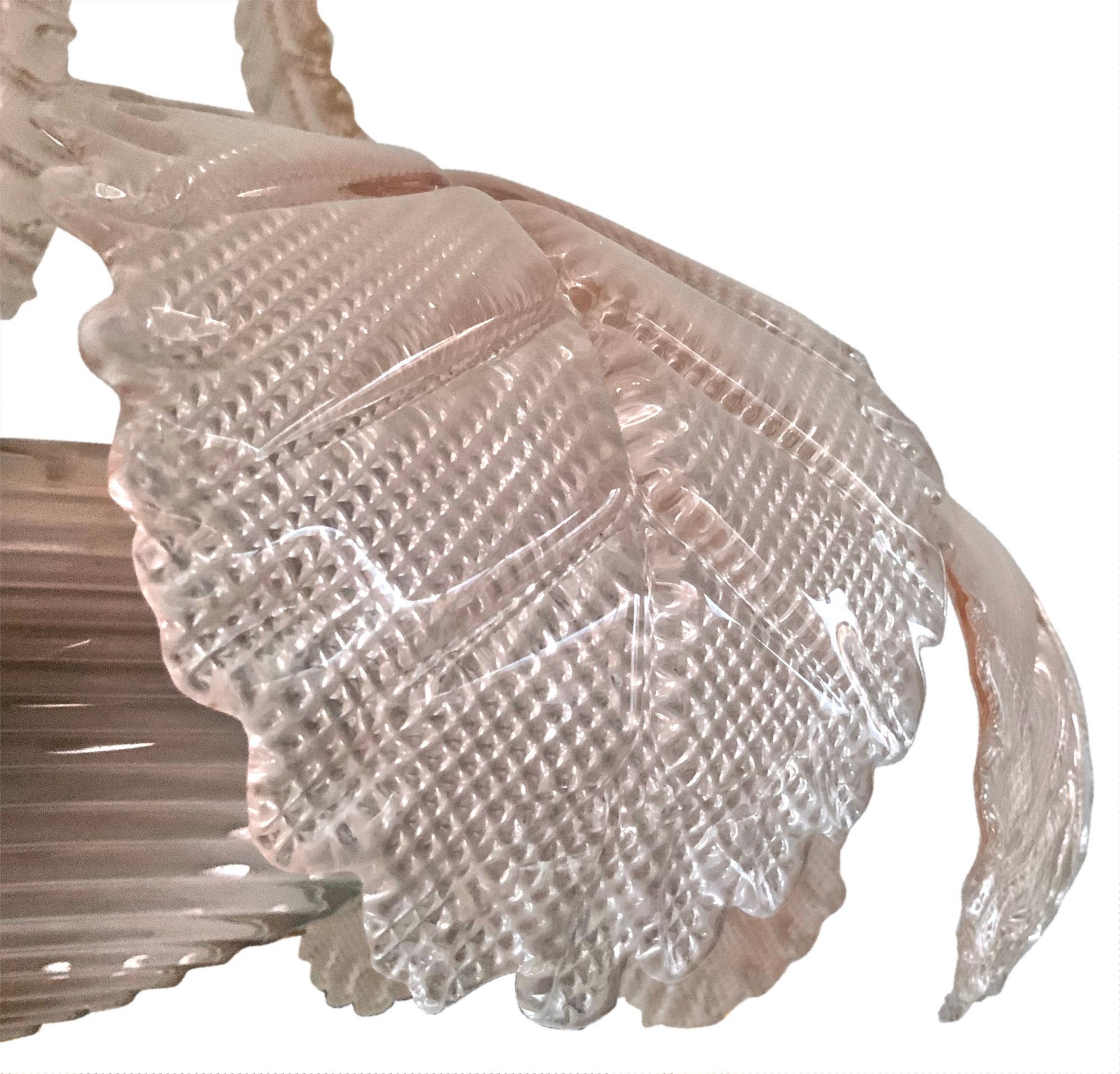 Lampadario in vetro di Murano, color rosa chiaro, anni 40/50. H cm 84,...