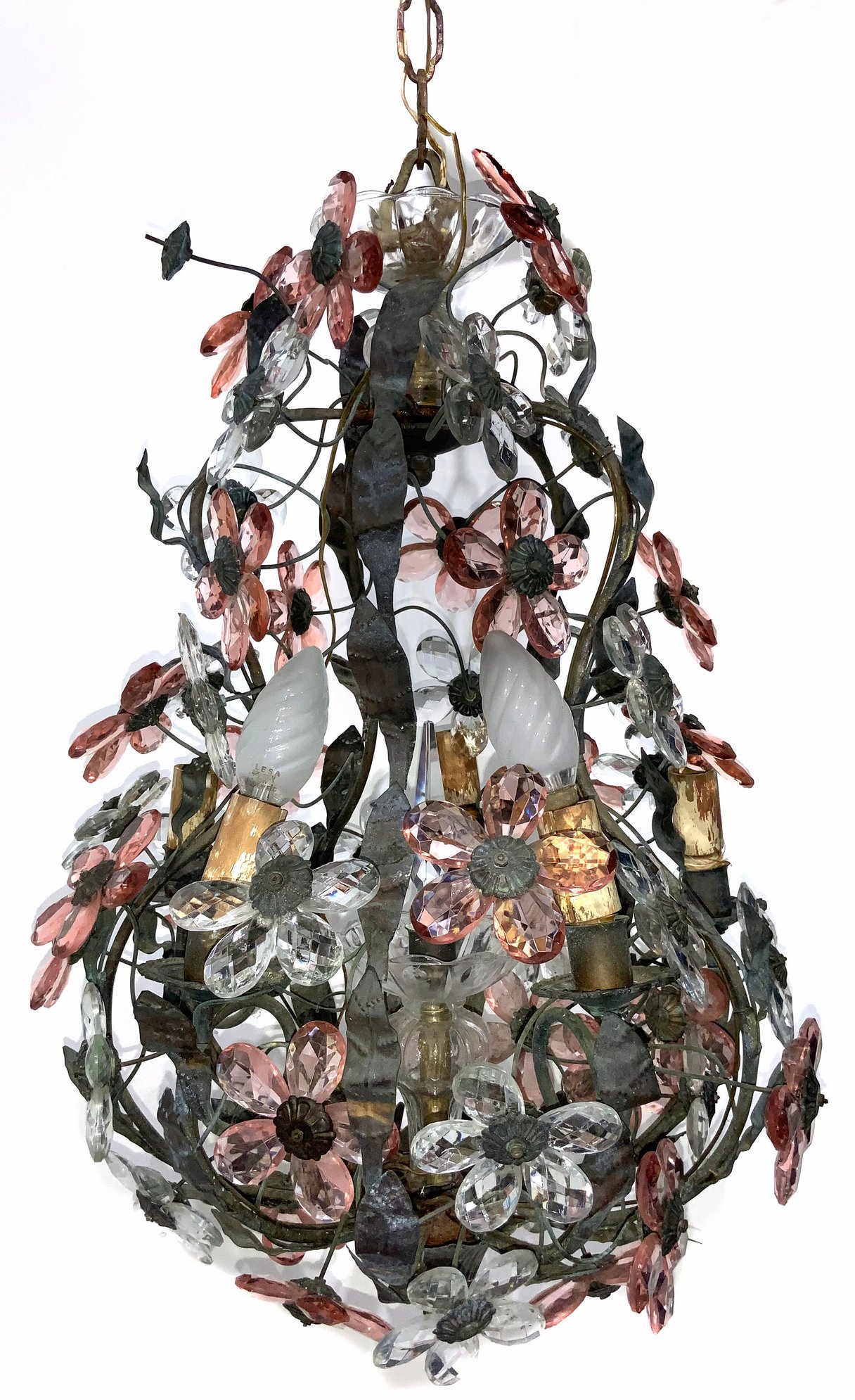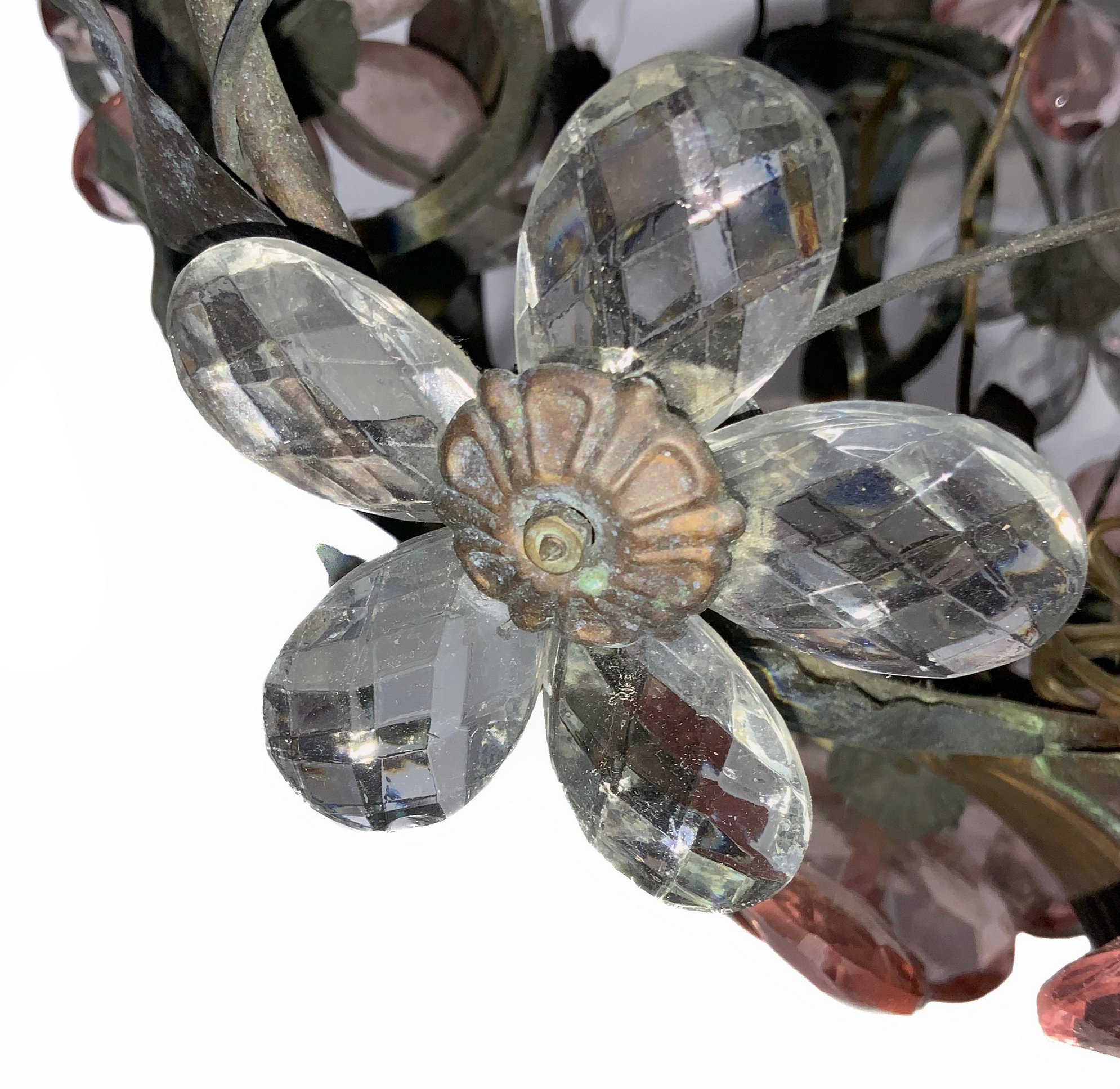 Lampadario con fiori di cristallo a margherita, anni 50. H cm 56
